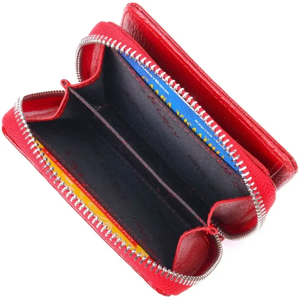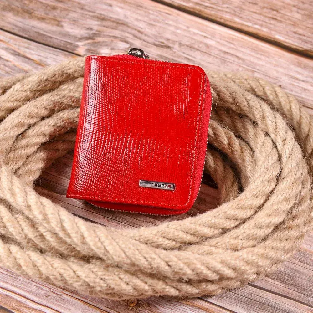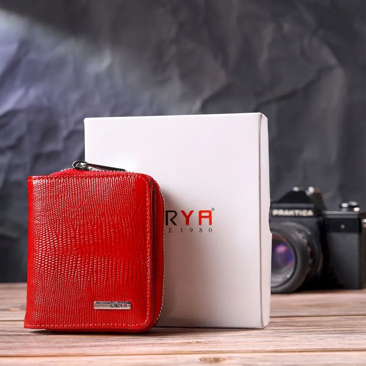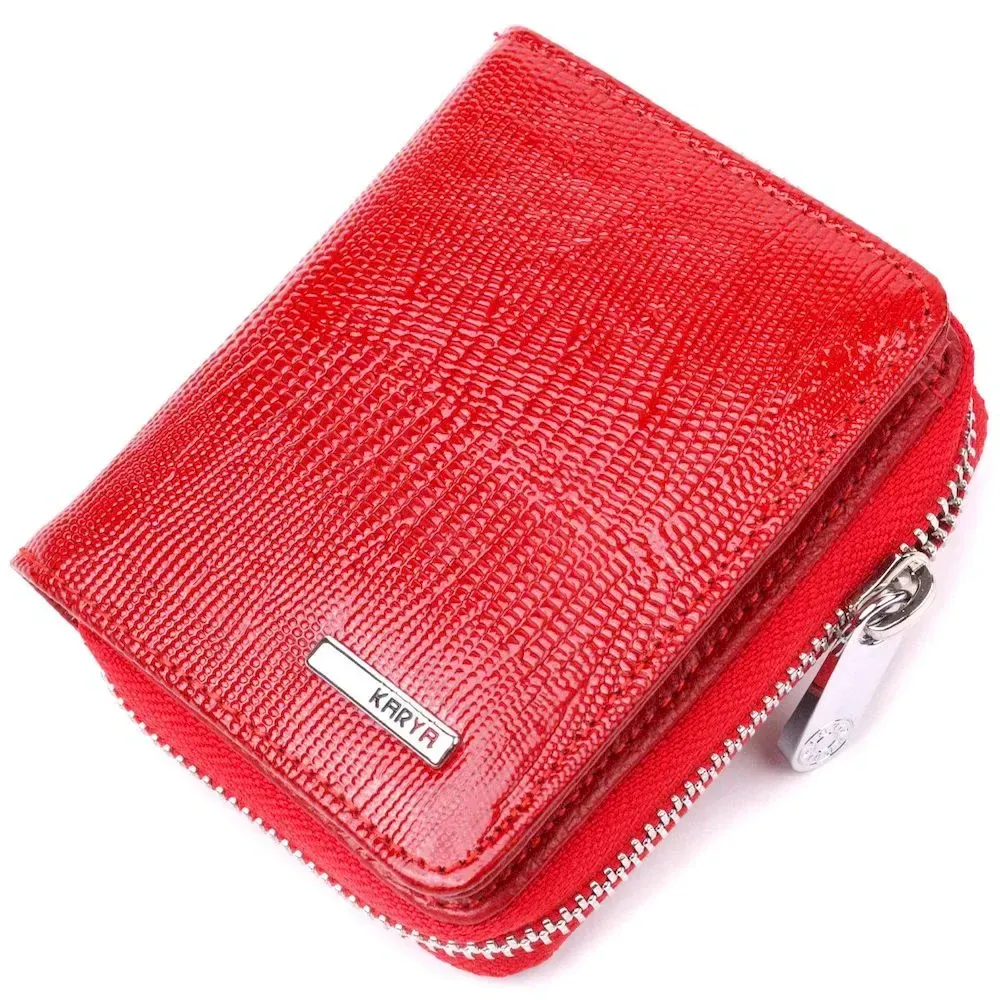 Лакований жіночий гаманець із монетницею на блискавці з натуральної фактурної шкіри KARYA 21410 Червоний