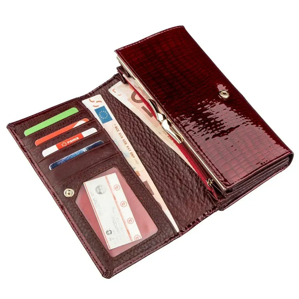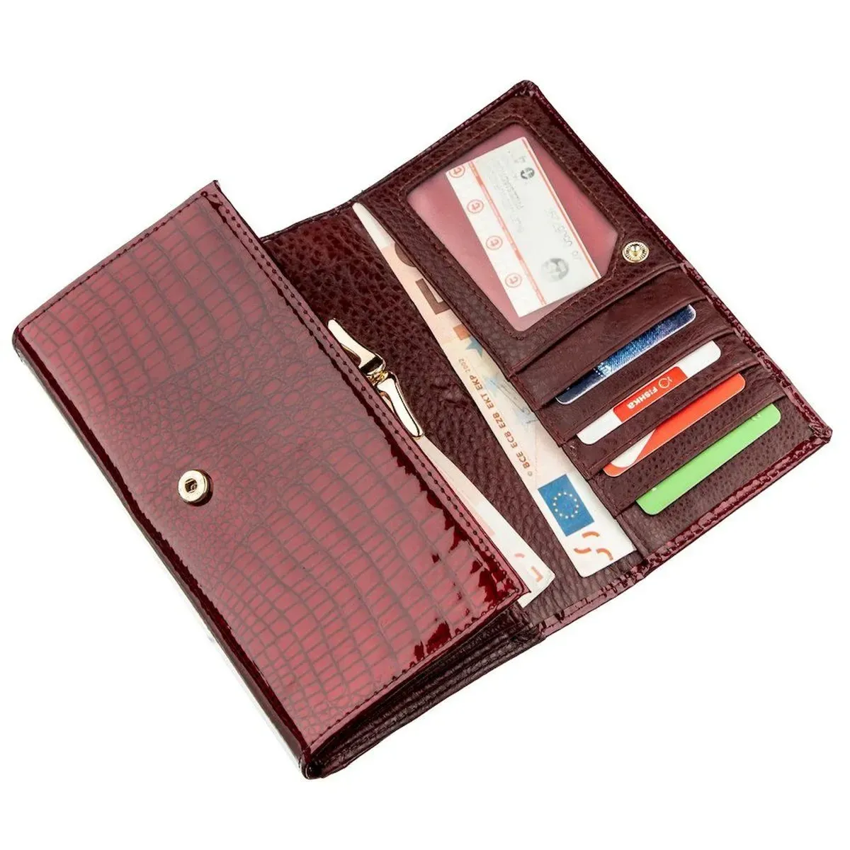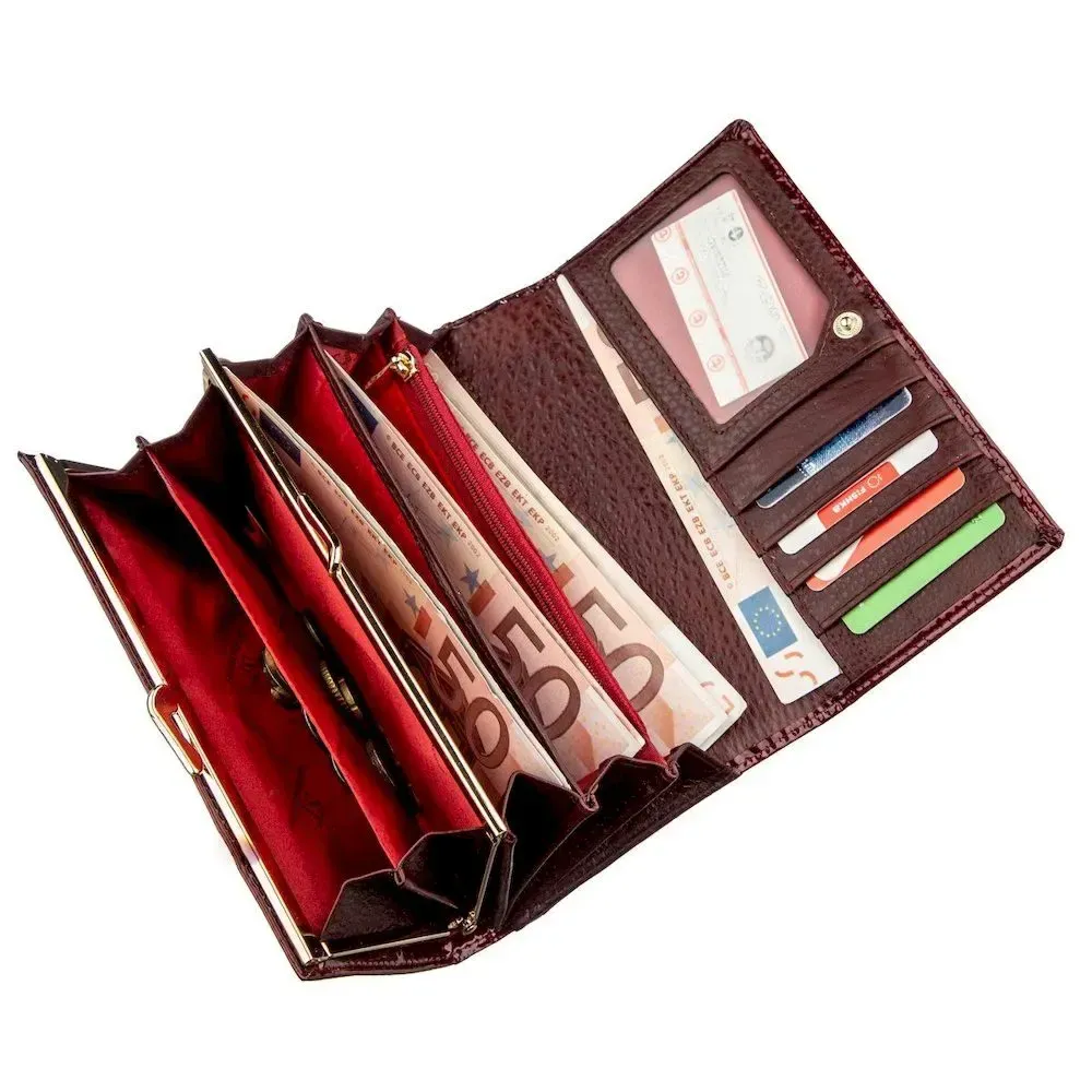 Лаковий жіночий гаманець з візитницею ST Leather 18911 Бордовий