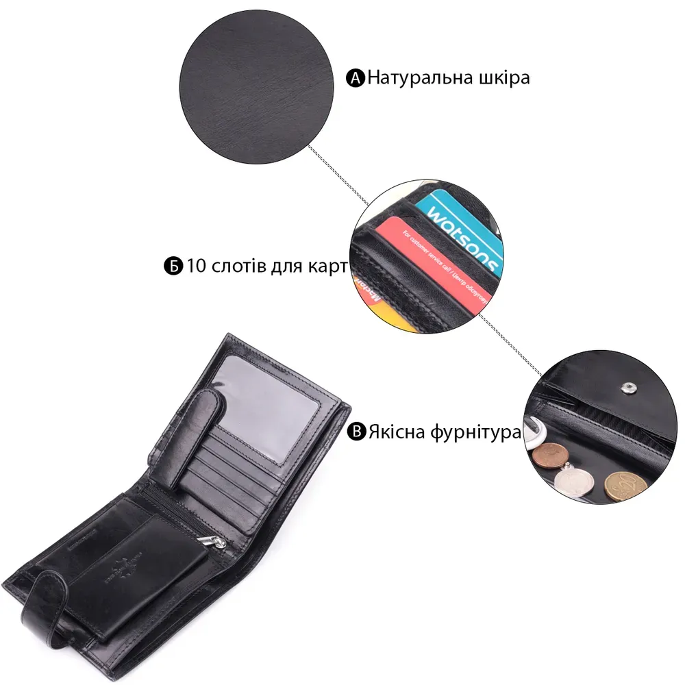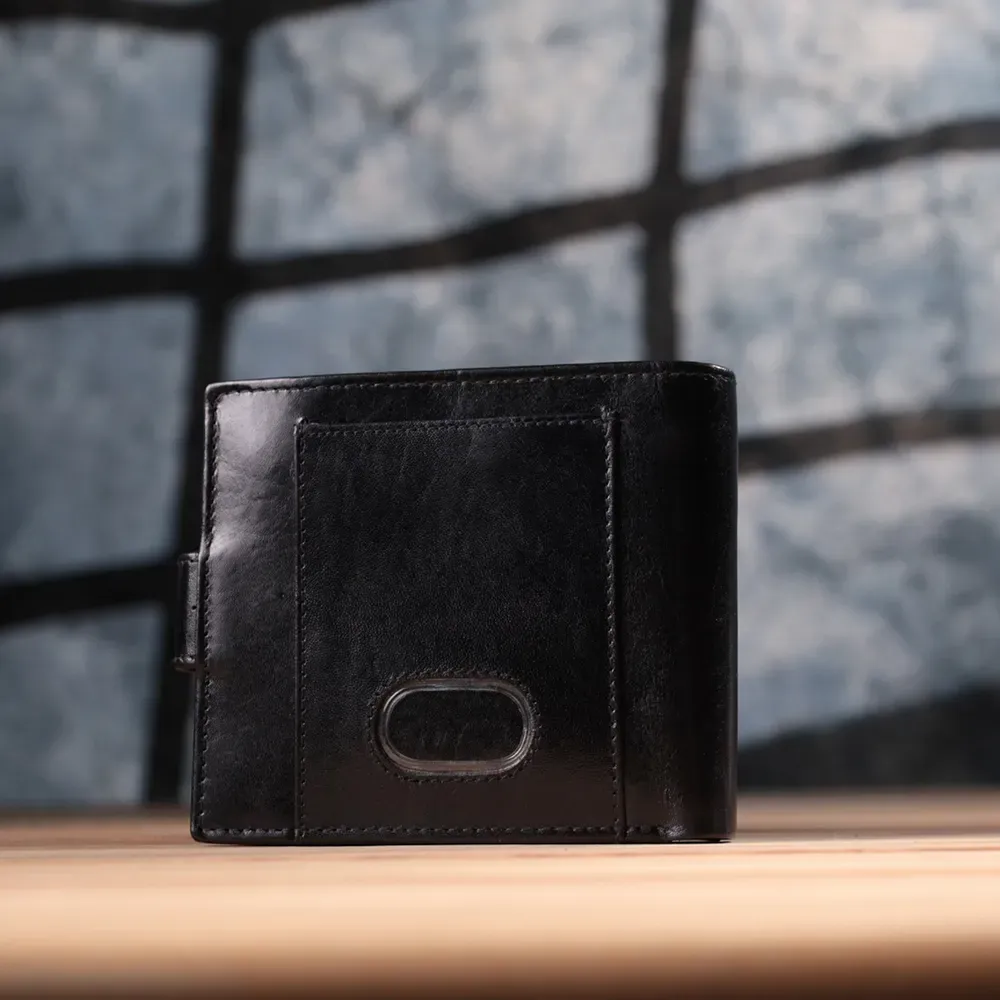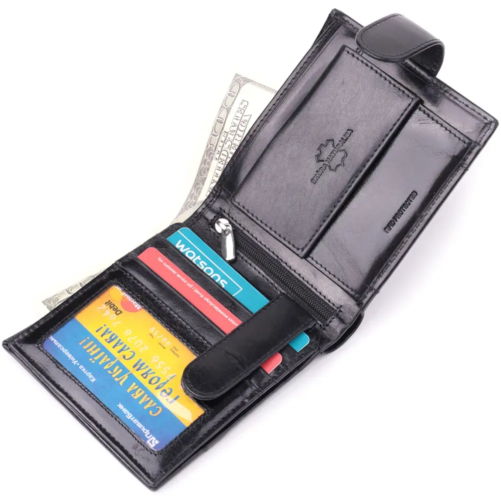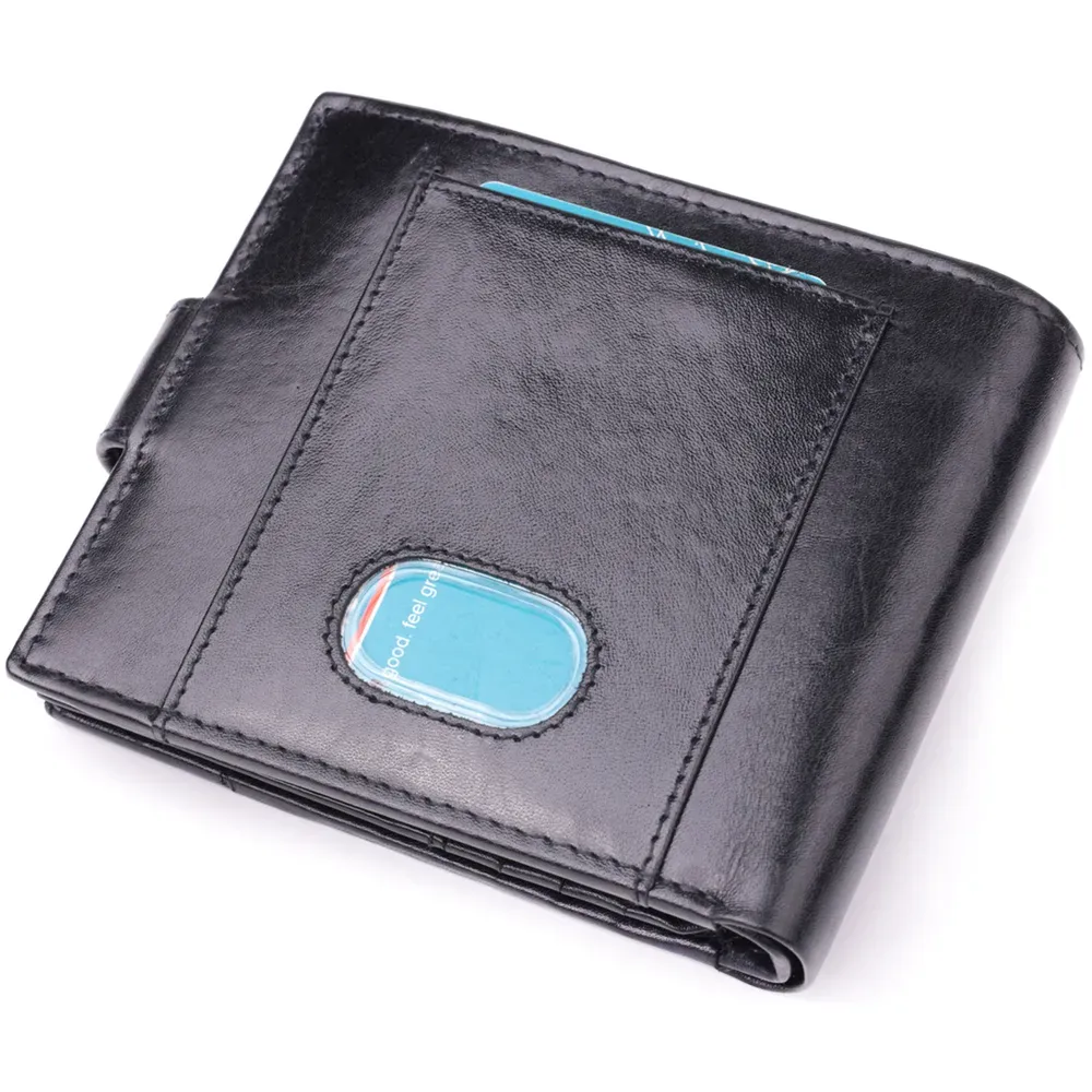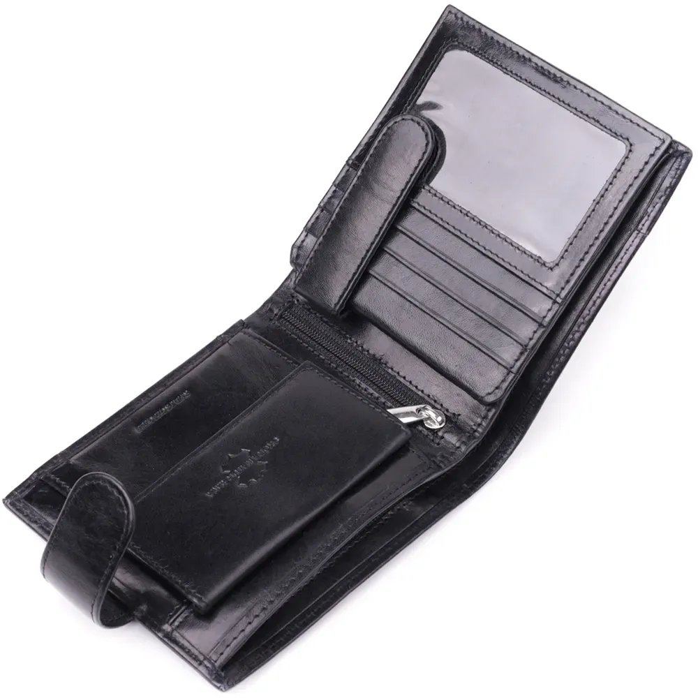 Люксовий чоловічий гаманець із натуральної глянсової шкіри Vintage 15110 Чорний