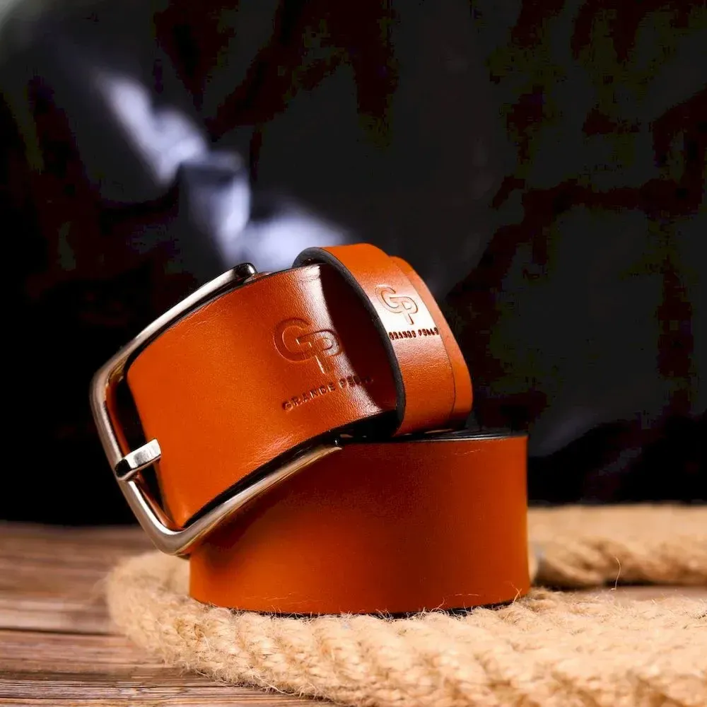 Люксовий ремінь для чоловіків з натуральної шкіри Grande Pelle 21473 Рудий