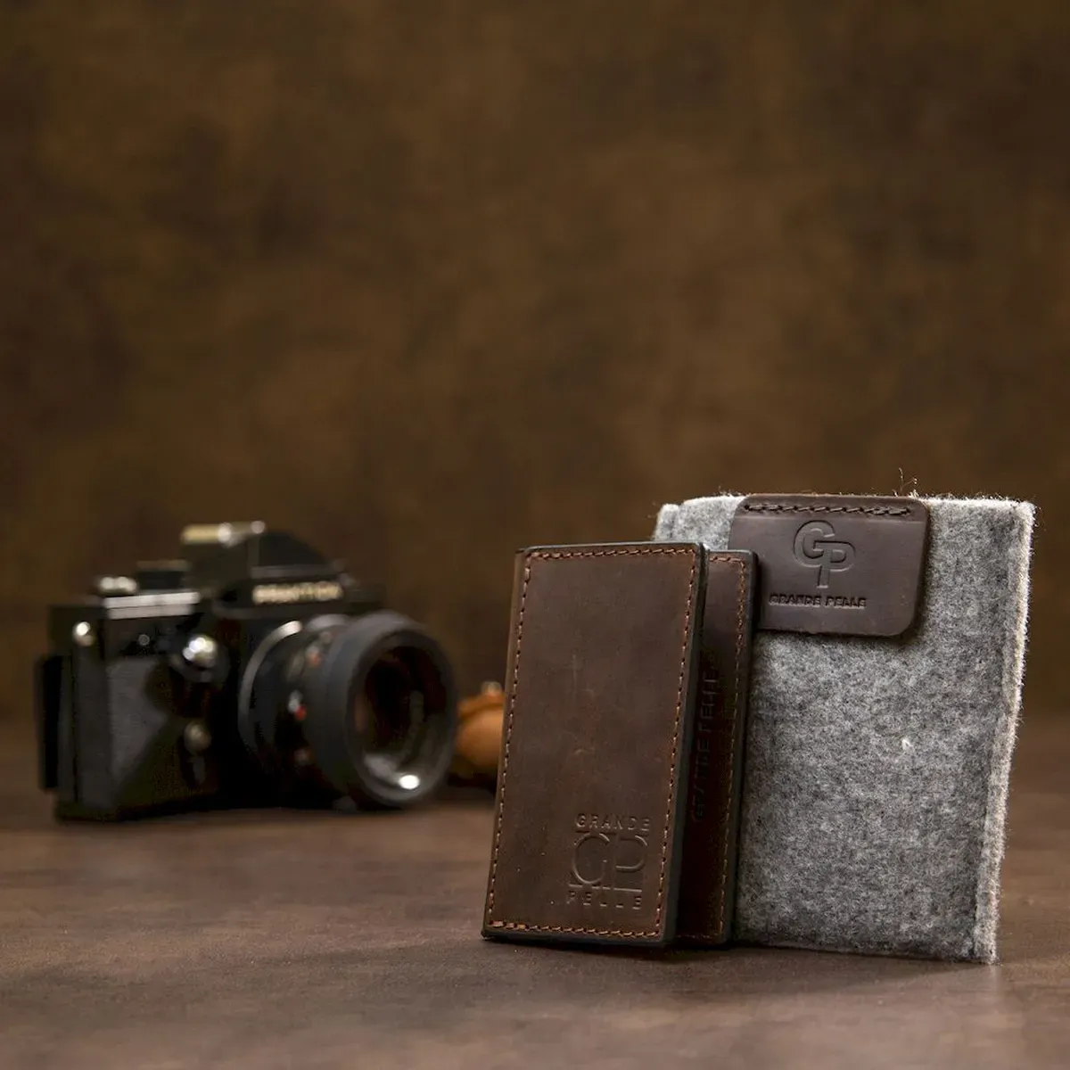 Маленький шкіряний картхолдер GRANDE PELLE 11503 Коричневий