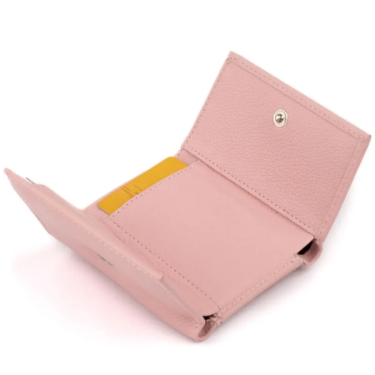 Маленьке портмоне у ніжному рожевому кольорі. Виріб виглядає елегантно та стильно. Таке портмоне підкреслить вашу жіночність і додасть легкості. Аксесуар закривається на кнопку і доповнений всім необхідним функціоналом. Підійде аксесуар для вас, якщо ви не носите багато готівки, а віддаєте перевагу картам. Модель стане знахідкою для дівчат. Портмоне міститься у маленьку сумочку і навіть кишеню. Шкіряне портмоне – найкращий подарунок для будь-якої дівчини. Упаковано у фірмову коробку білого кольору.
