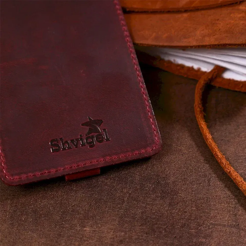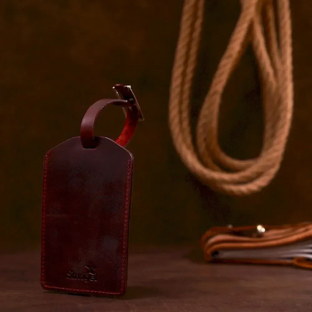 Матова вінтажна шкіряна бирка на валізу Shvigel 16558 Бордова