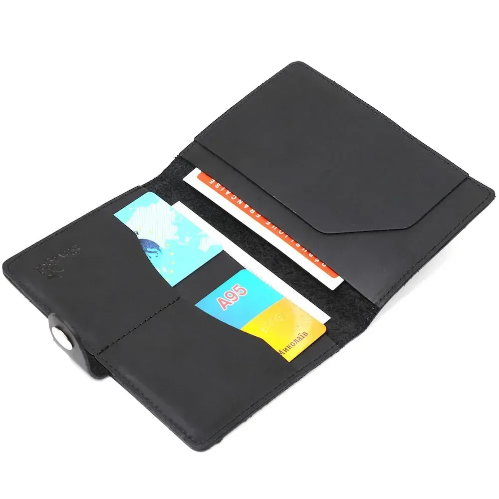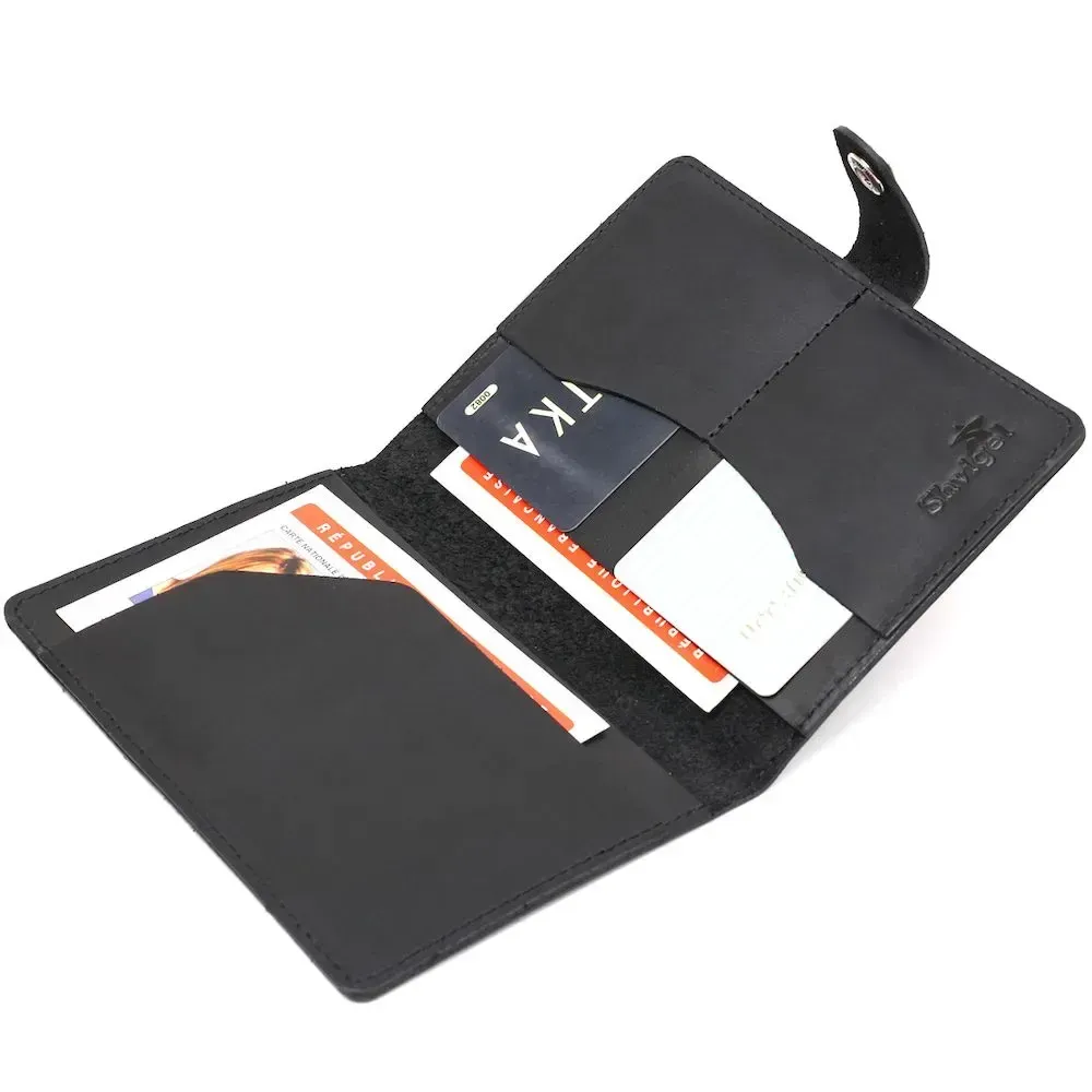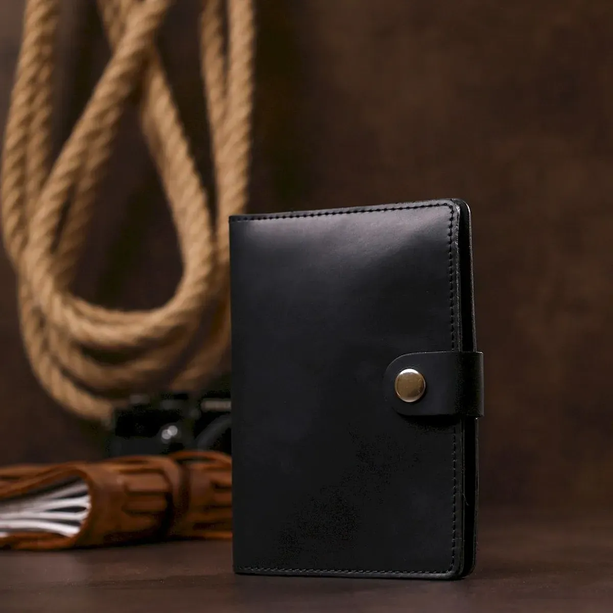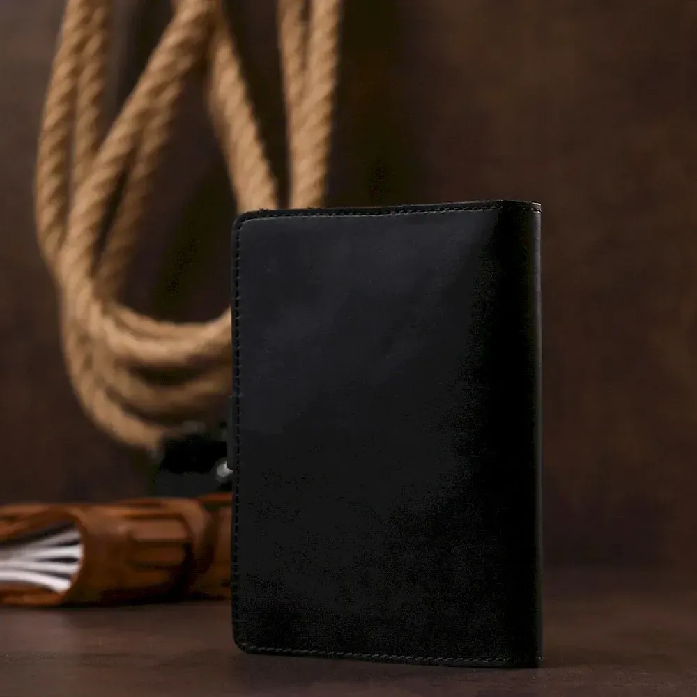 Відмінний та незамінний у подорожах аксесуар для зберігання документів та інших цінних паперів. Виконаний він із натуральної шкіри високого класу з покращеними показниками міцності. Колір виробу – універсальний чорний у матовому покритті, фактура – гладка і приємна на дотик. Ця модель стане чудовим подарунком на будь-яке свято.