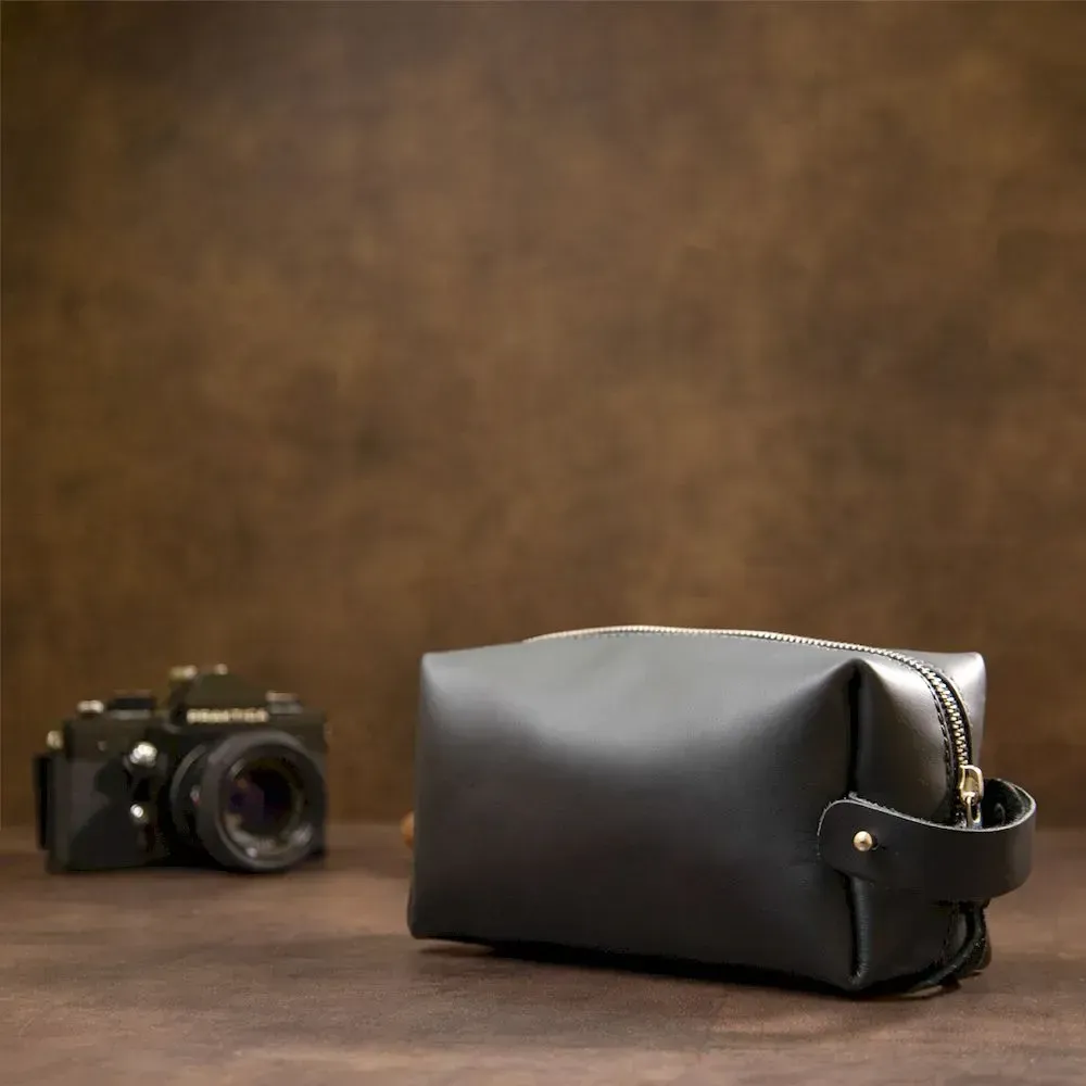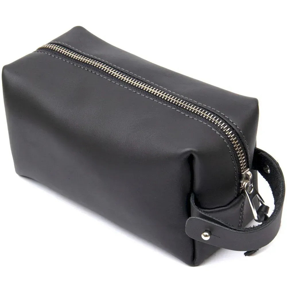 Елегантна чоловіча косметичка з висококласної натуральної шкіри для зберігання самих важливих речей, які мають бути при собі. Фактура виробу матова гладка, що виглядає красиво та багато. Такий несесер стане чудовим подарунком для коханого чоловіка чи колеги по роботі. Запакований він у фірмовий чохол.