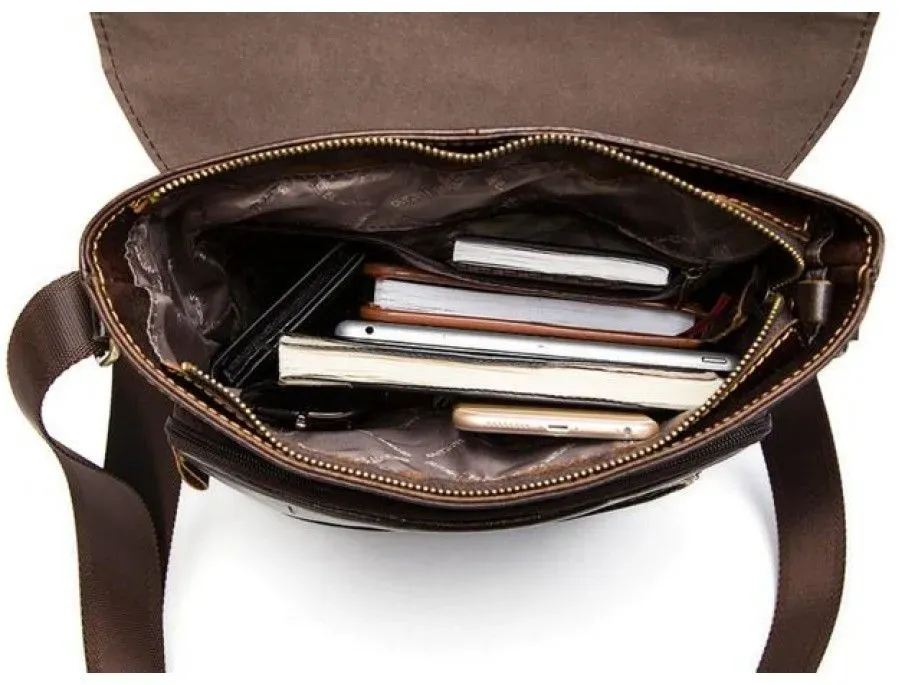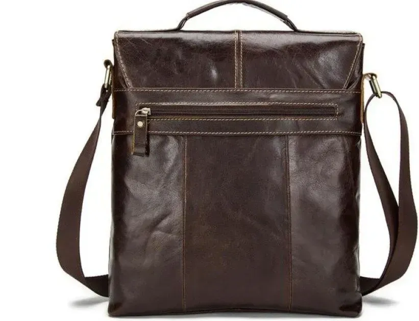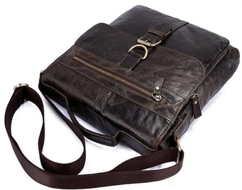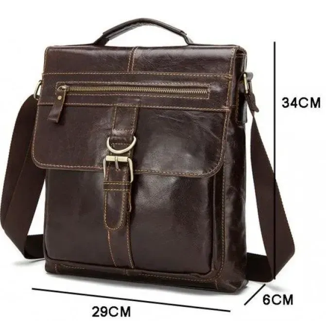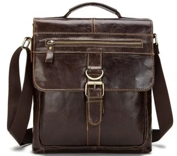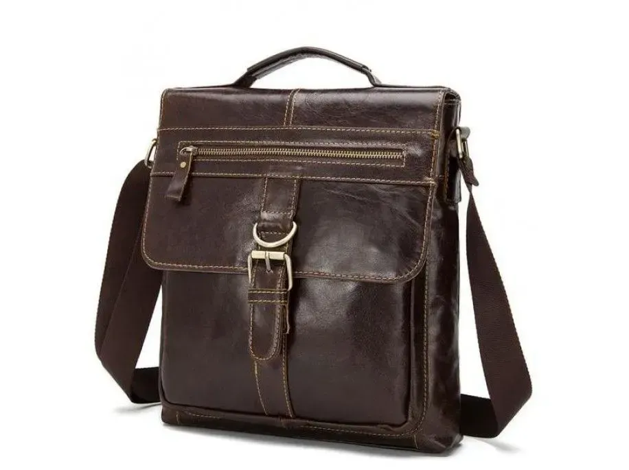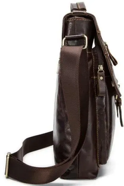 Відмінна чоловіча шкіряна сумка коричневого кольору. Аксесуар відрізняється стильним зовнішнім виглядом та відмінним функціоналом. Сумку можна переносити через плече або в руці за допомогою зручної шкіряної ручки.