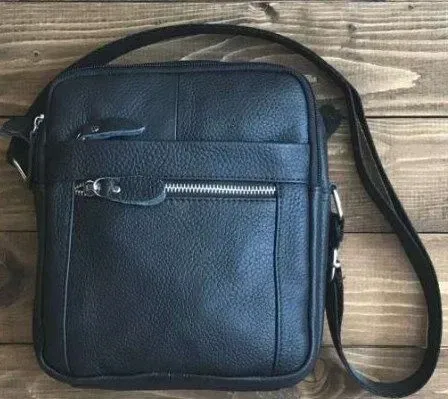 Міцна міцна сумка через плече. Аксесуар виконаний із натуральної високоякісної зернистої шкіри. Колір фурнітури: срібло. Сумка надійно прошита міцною чорною ниткою. Шви – рівні, акуратні. Відмінний варіант для подарунка, рідним та близьким людям.