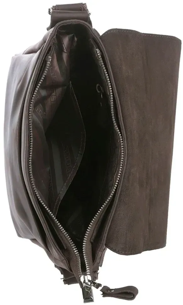 В такую сумку легко поместятся документы, кошелек, телефон, планшет, а также все необходимые вещи. Содержимое защищено с помощью надежной прочной молнии, а также клапаном. Кроме основного отделения, в сумке имеются дополнительные карманы.