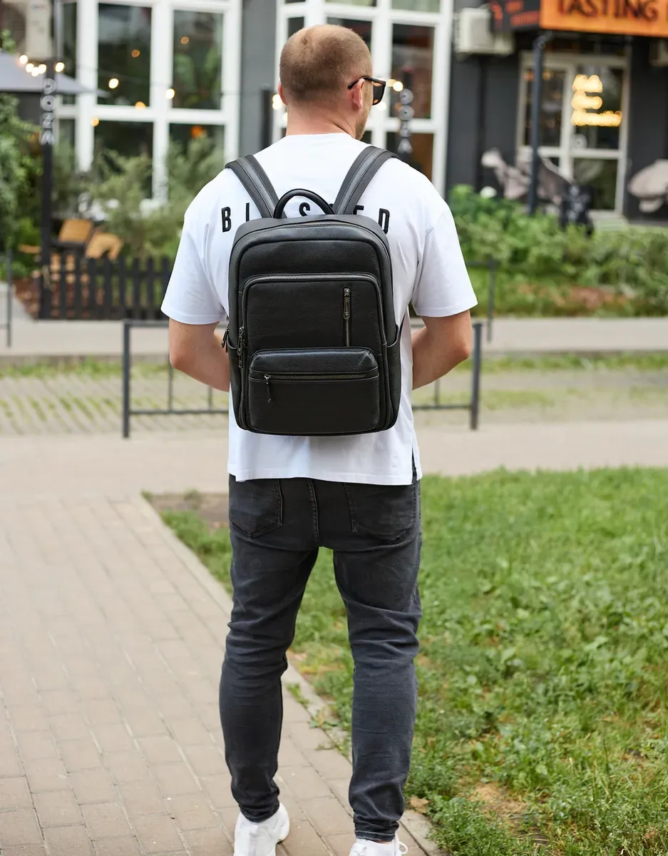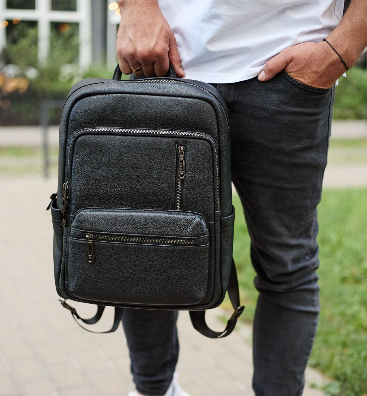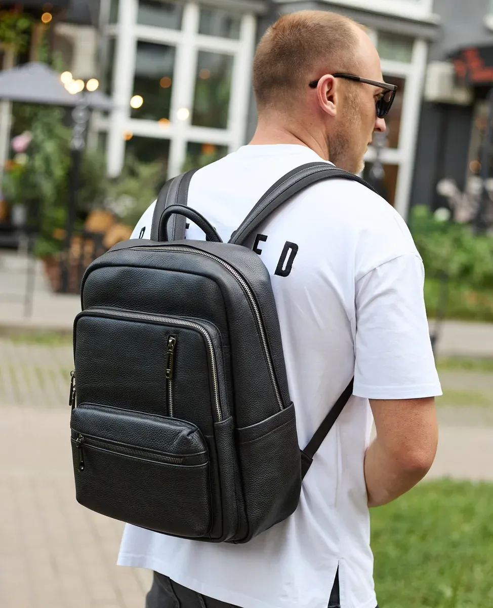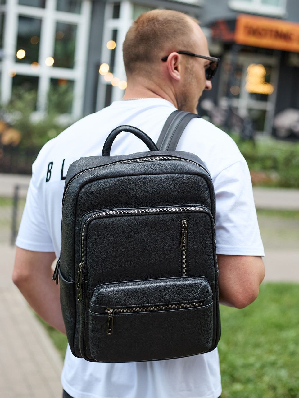 Міський чоловічий рюкзак із натуральної шкіри 40х30х18, наплічник для роботи та подорожей, чорний