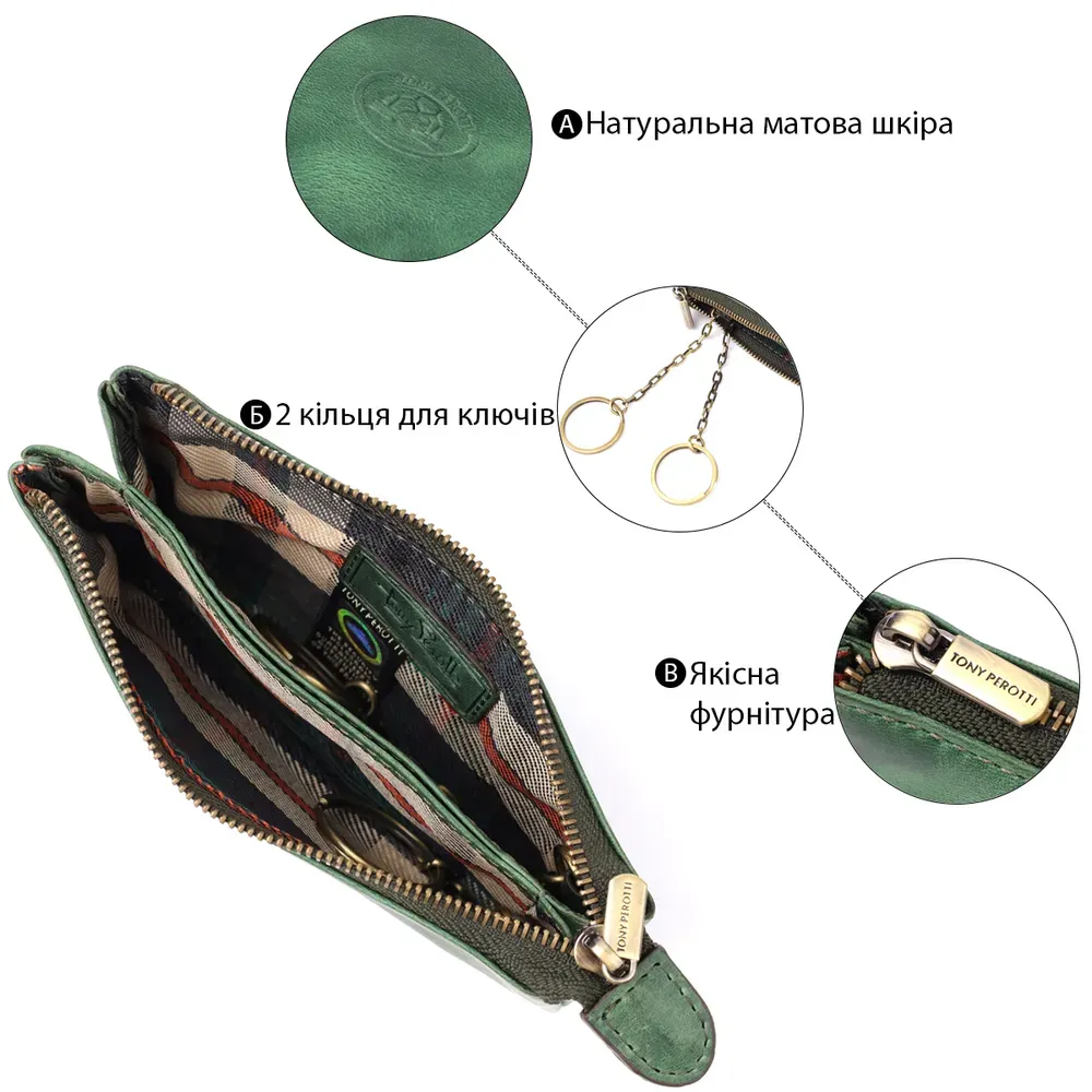 Містка ключниця на два відділення з матової натуральної шкіри Tony Perotti 20835_1 (3350 deep green) Зелений