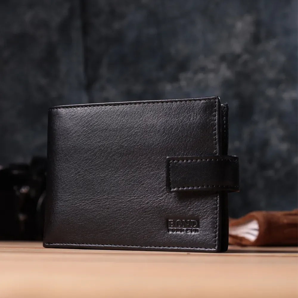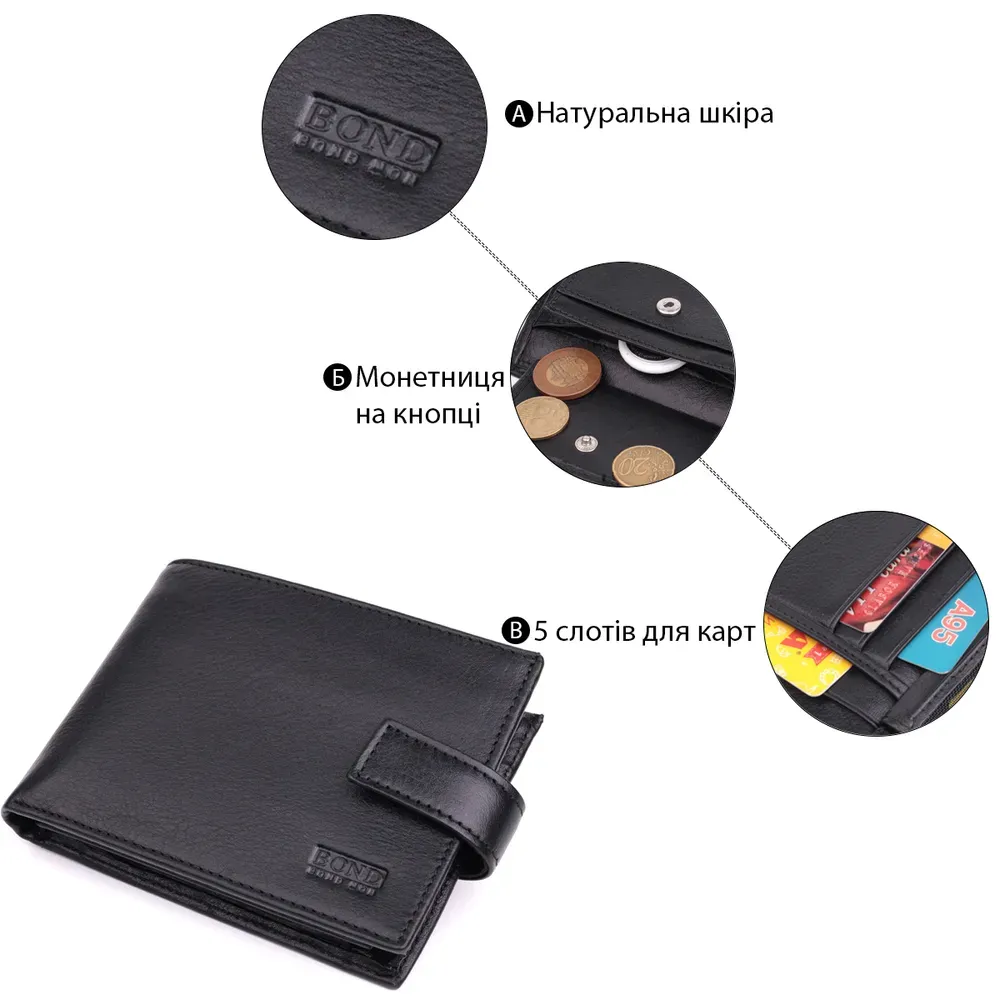 Місткий чоловічий гаманець з натуральної шкіри BOND 22861 Чорний
