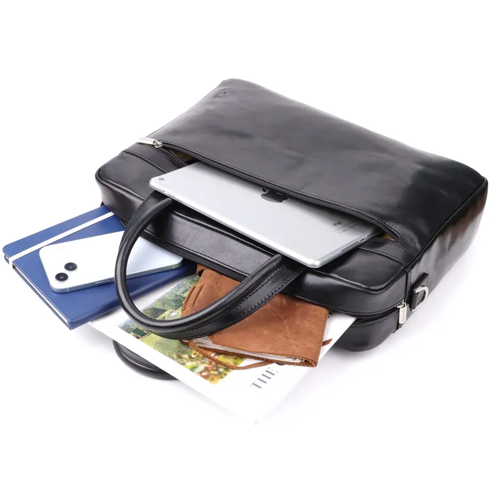 Місткий чоловічий портфель з відділенням для ноутбука з гладкої натуральної шкіри Tony Perotti 20859_1 (9637-38 nero) Чорний