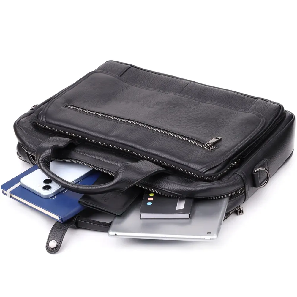 Місткий портфель для чоловіків з натуральної шкіри Vintage 23043 Чорний