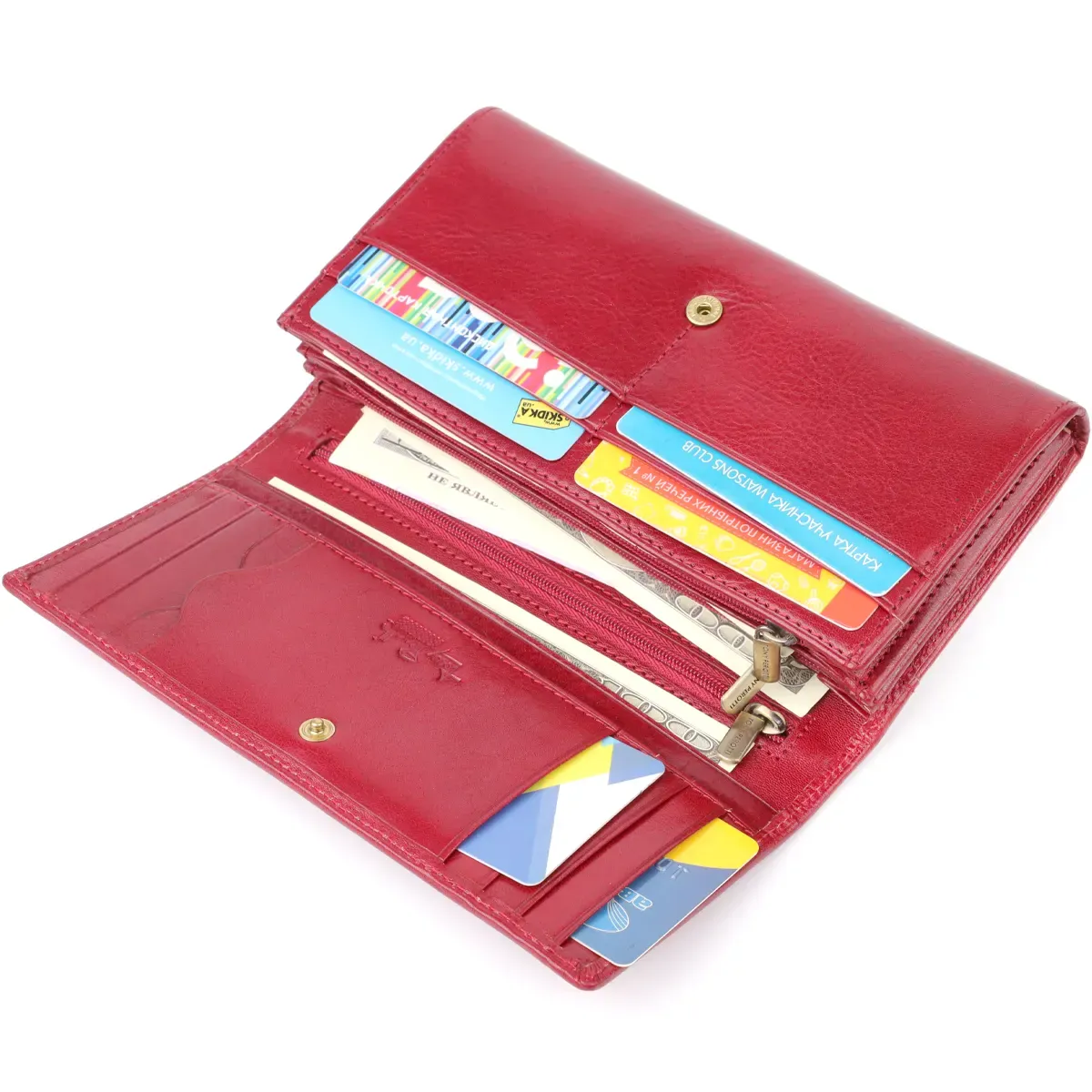 - 3 плоскі кишені на всю довжину портмоне;