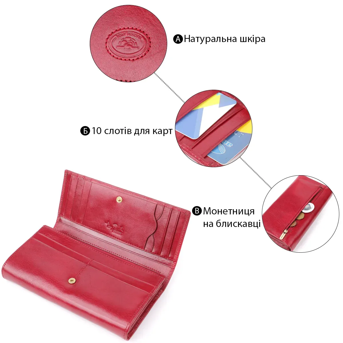 Місткий жіночий гаманець із глянсової натуральної шкіри Tony Perotti 20893_1 (1911 rosso) Червоний