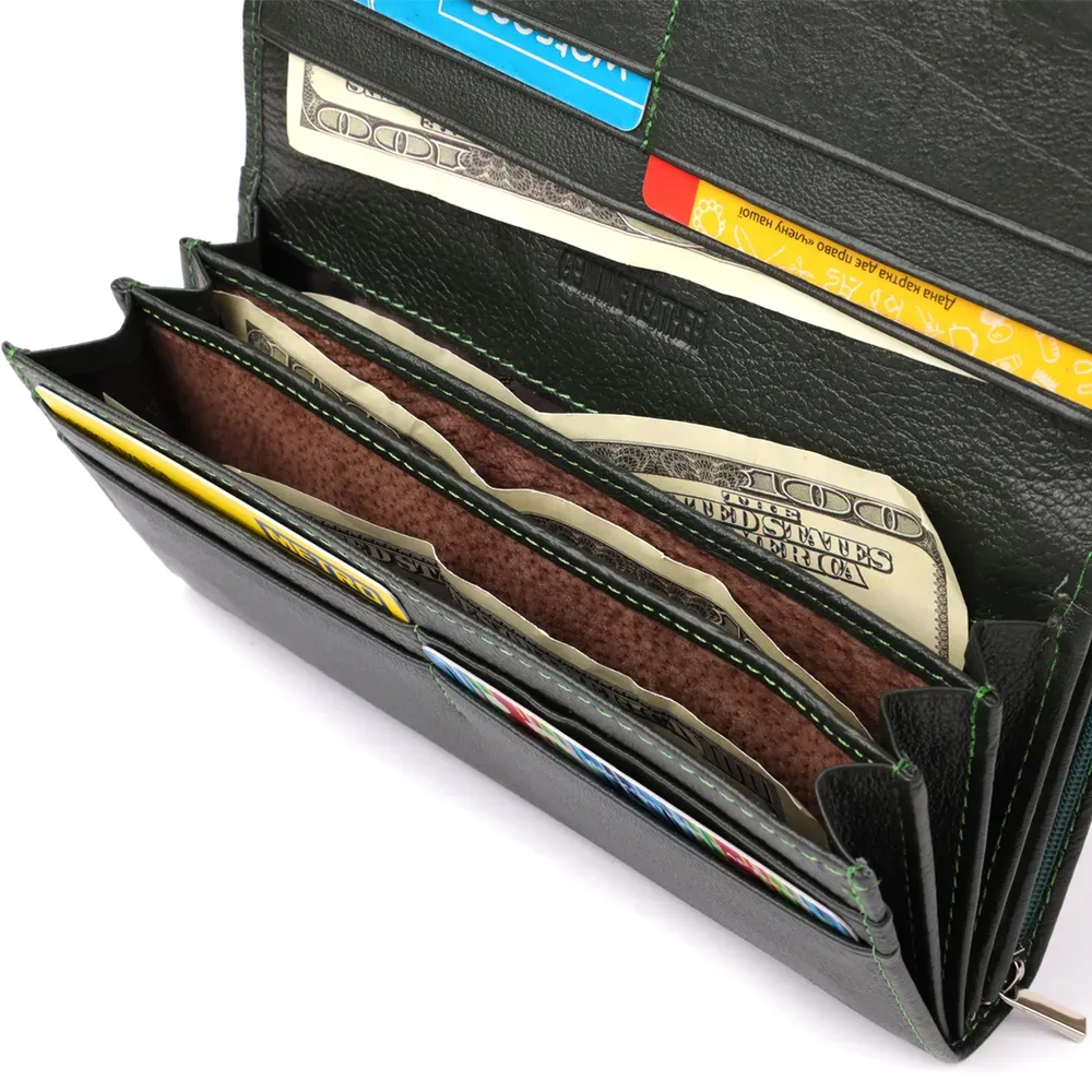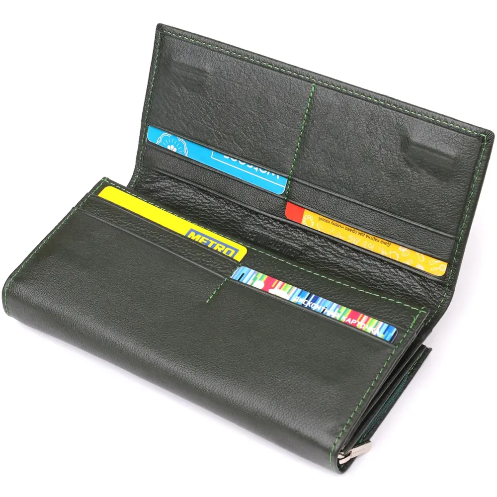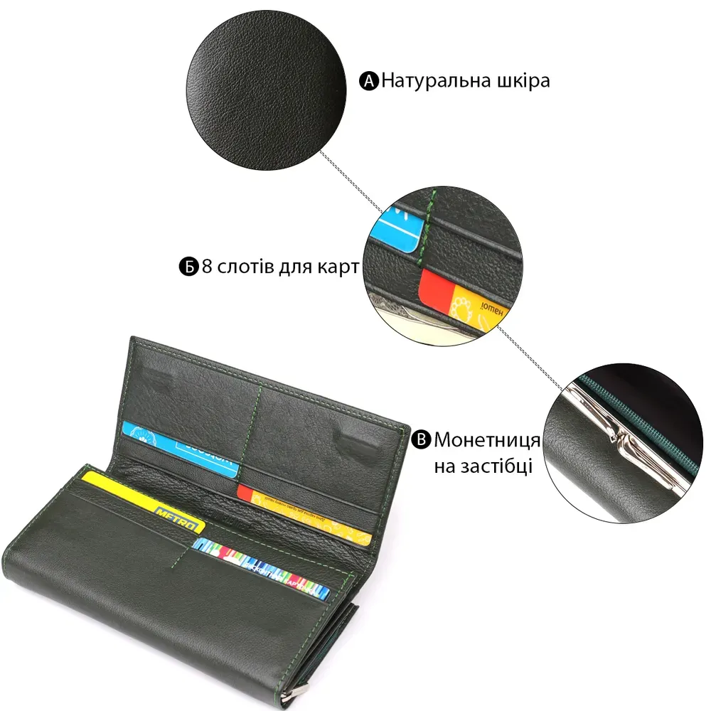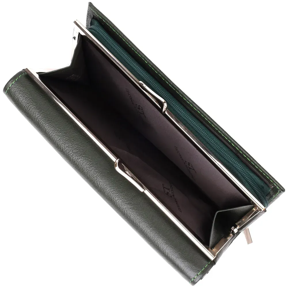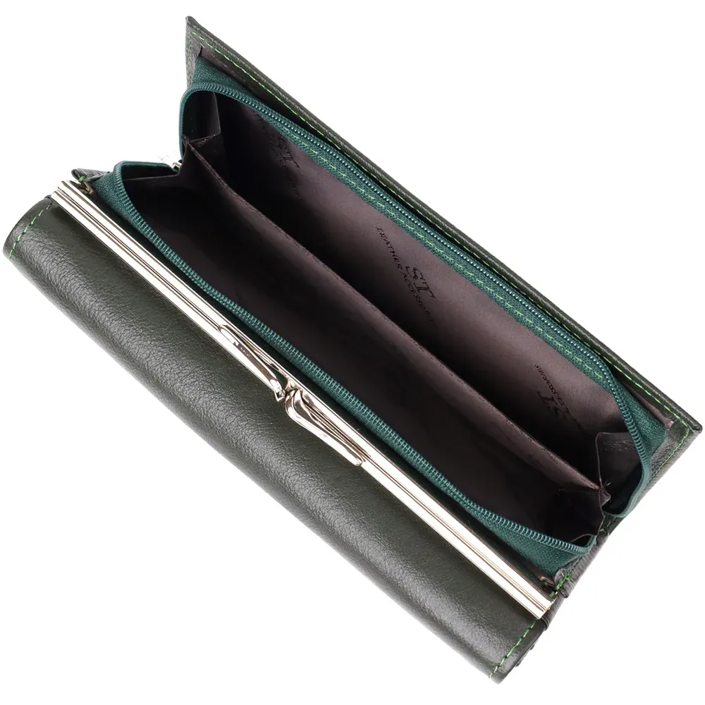Місткий жіночий гаманець на магнітах із натуральної шкіри ST Leather 23115 Зелений