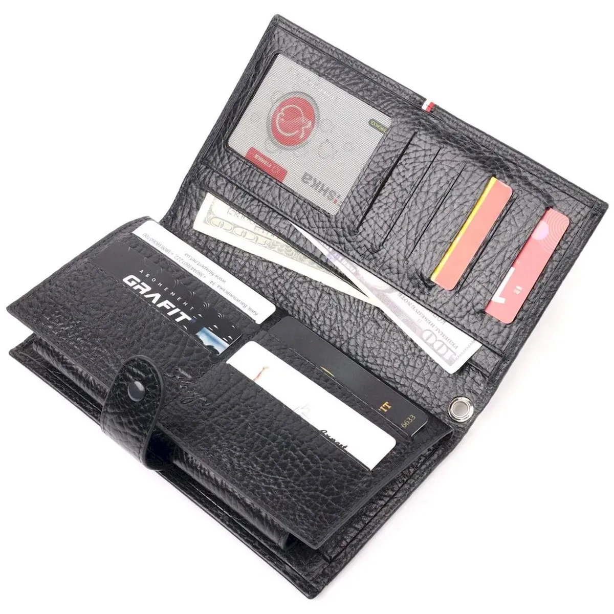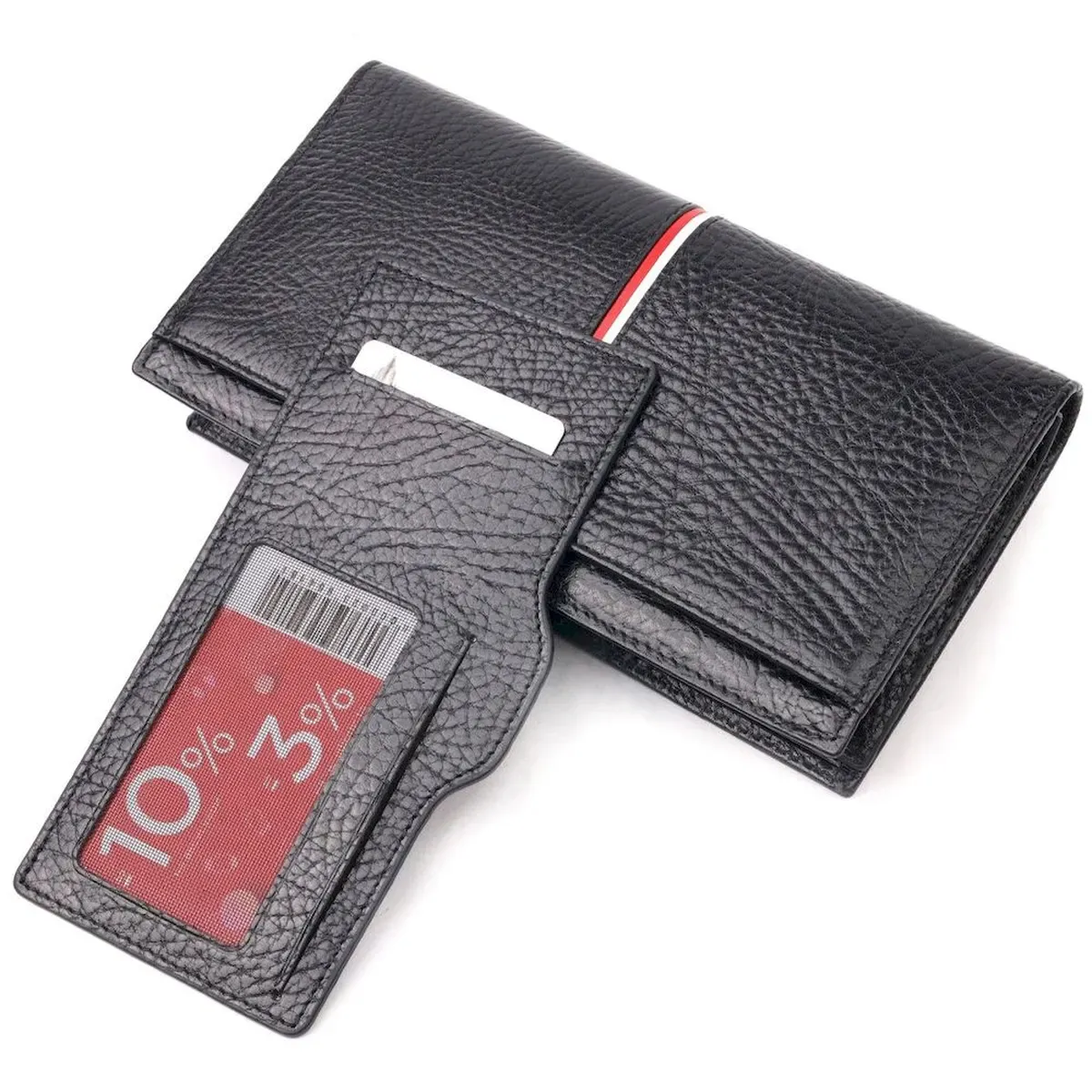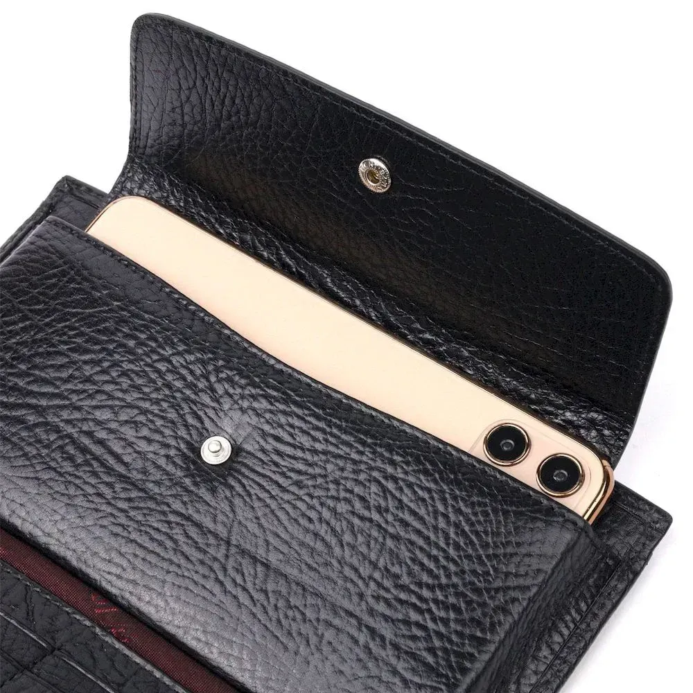 Багатофункціональний клатч із натуральної крупнозернистої шкіри KARYA 21181 Чорний