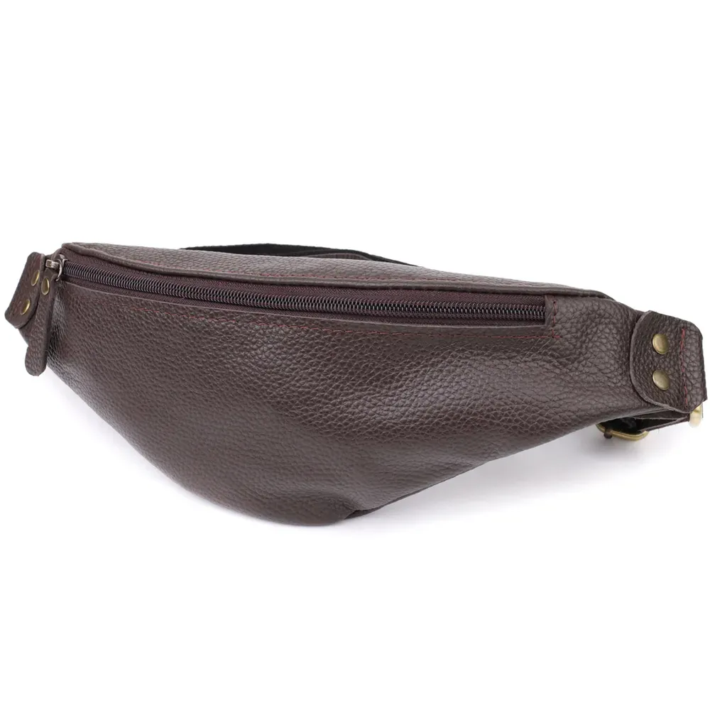 Модна сумка бананка для чоловіків із зернистої натуральної шкіри Shvigel 23137 Коричневий