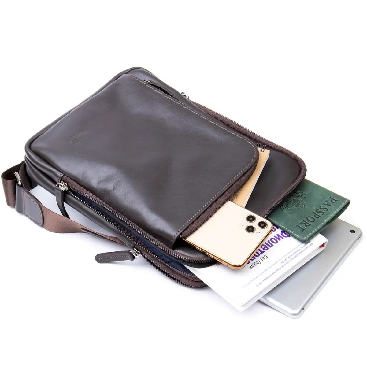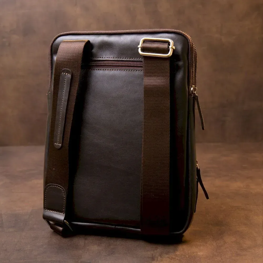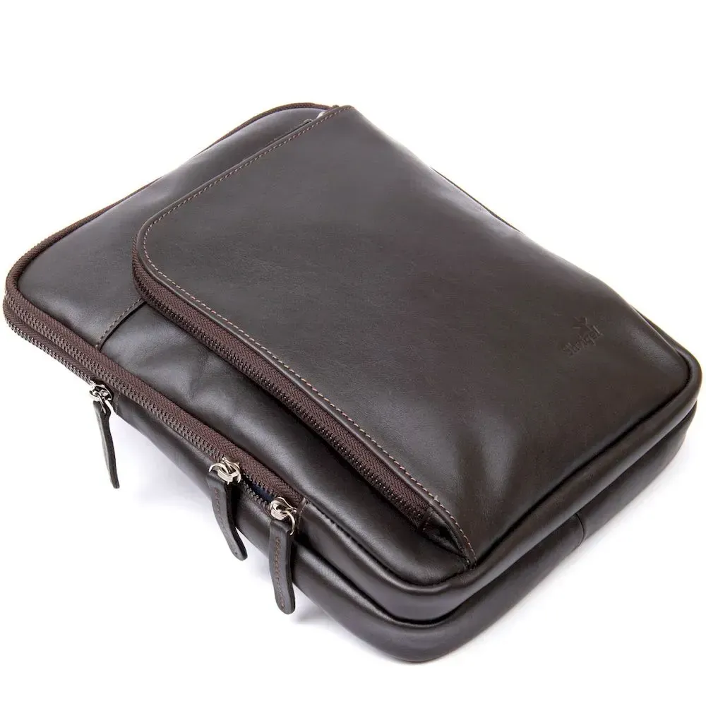 Нова модель з оригінальним дизайном у невибагливій гладкій шкірі. Виріб не залишить байдужими шанувальників класики, але при цьому любителів моди. Модель чудово поєднує у собі оригінальність пронизану нотками класики. Якість сумки продумана до дрібниць. Виріб має кишеню для планшета. На лицьовій стороні тиснений логотип з написом Shvigel. Усередині – щільну текстильну підкладку синього кольору. Сумка буде найкращим подарунком для вашого чоловіка. У комплекті йде оранжевий чохол.