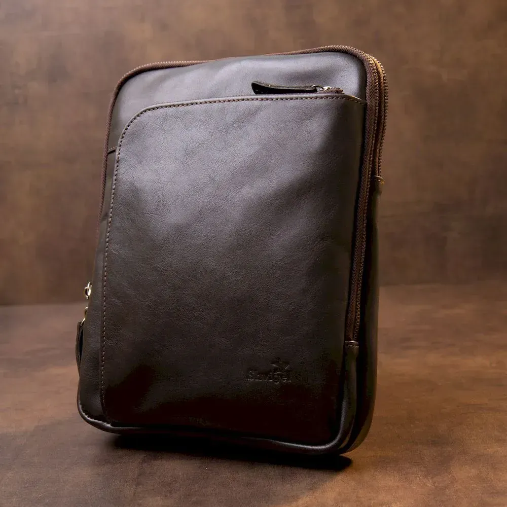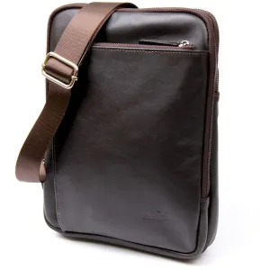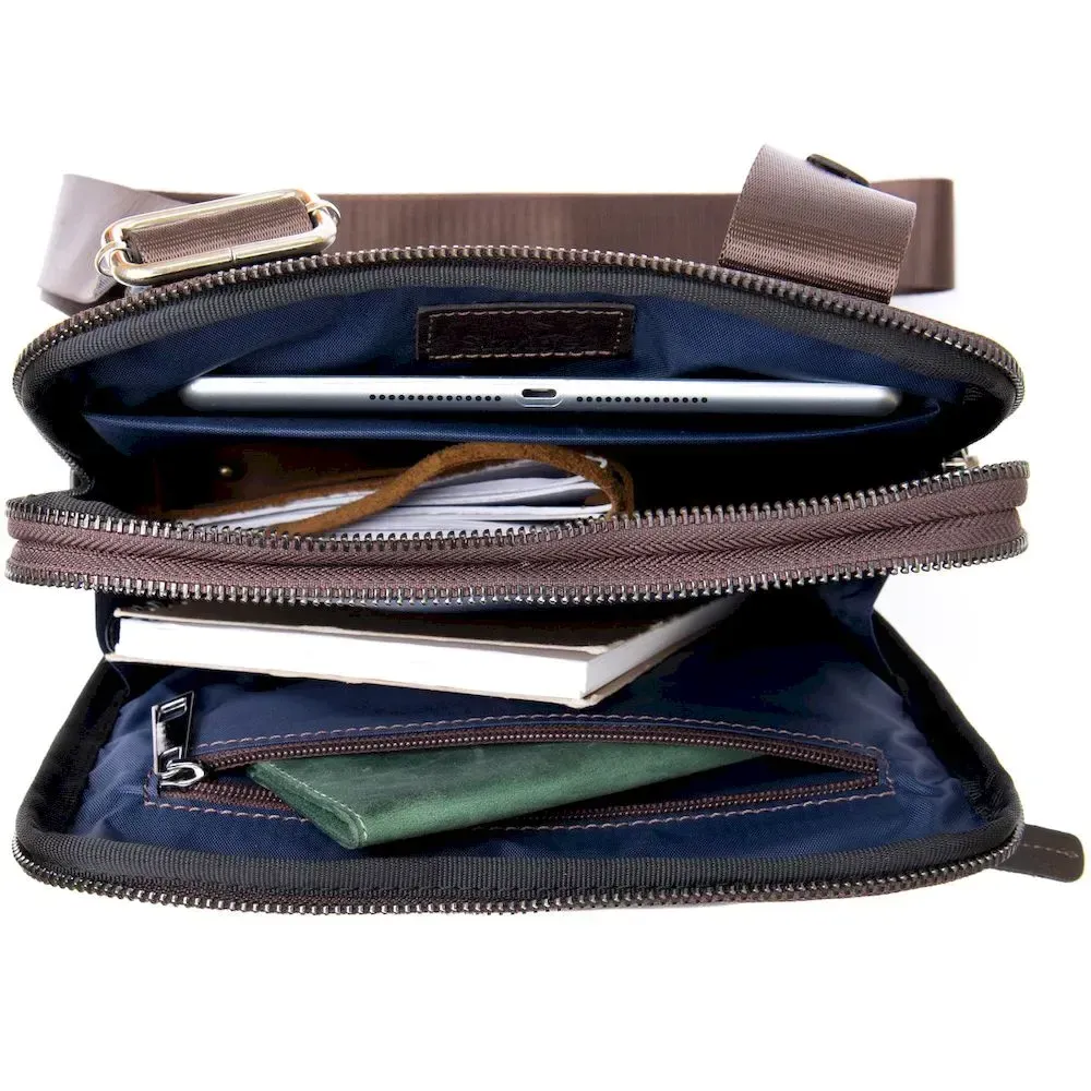 Модна сумка планшет з накладною кишенею на блискавці в гладкій шкірі 11282 SHVIGEL, Коричнева