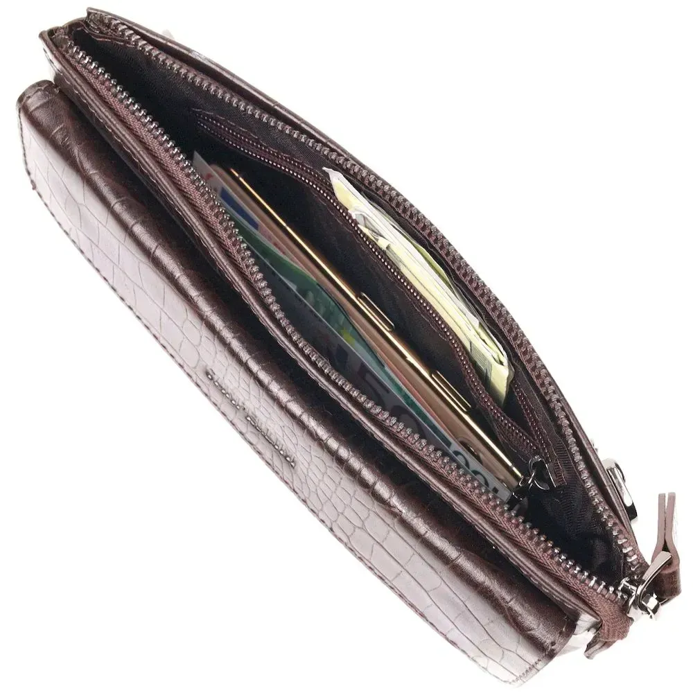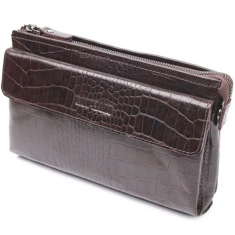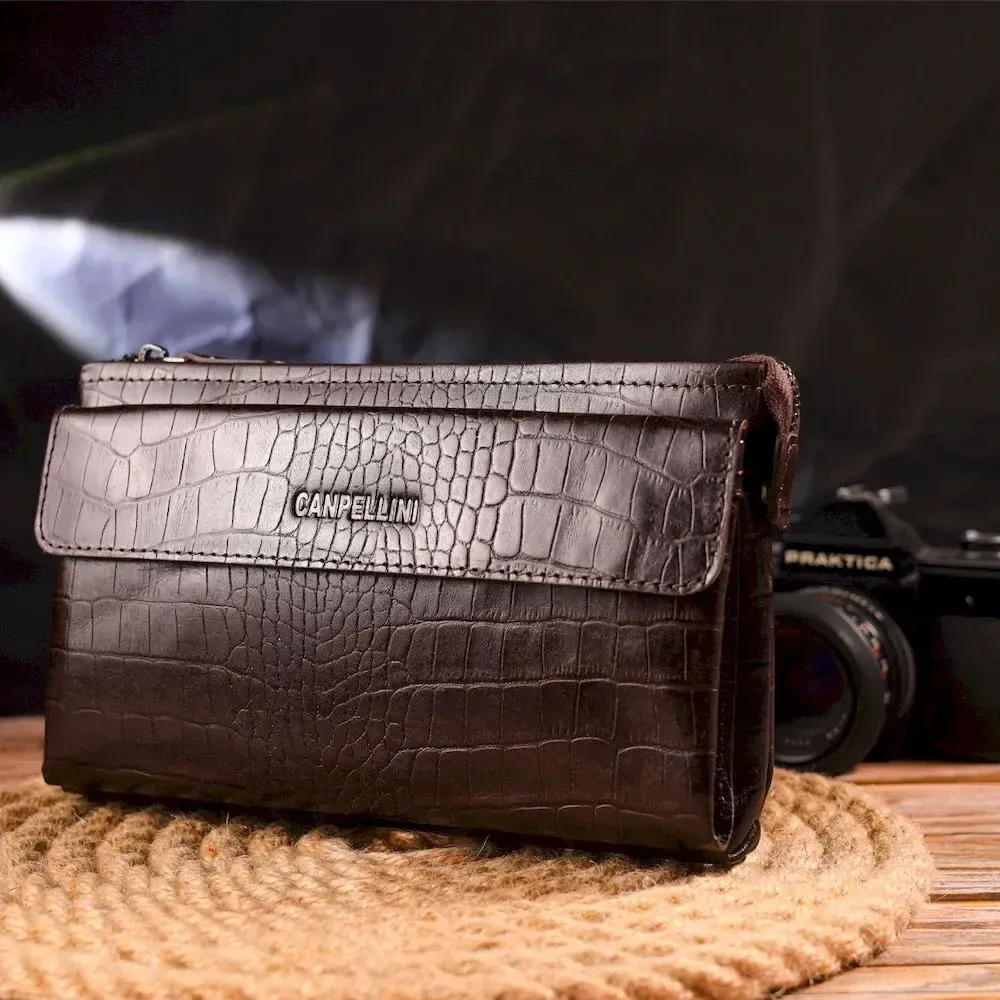 Модний клатч для чоловіків із натуральної фактурної шкіри CANPELLINI 21552 Коричневий