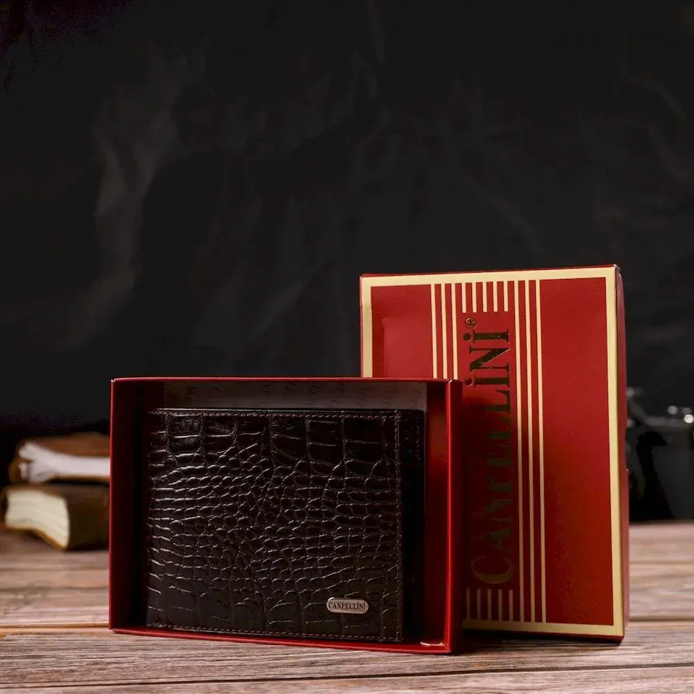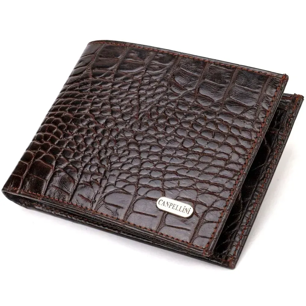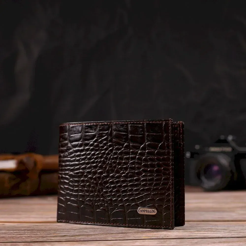 Модний гаманець для чоловіків з натуральної шкіри з тисненням під крокодила CANPELLINI 21926 Коричневий
