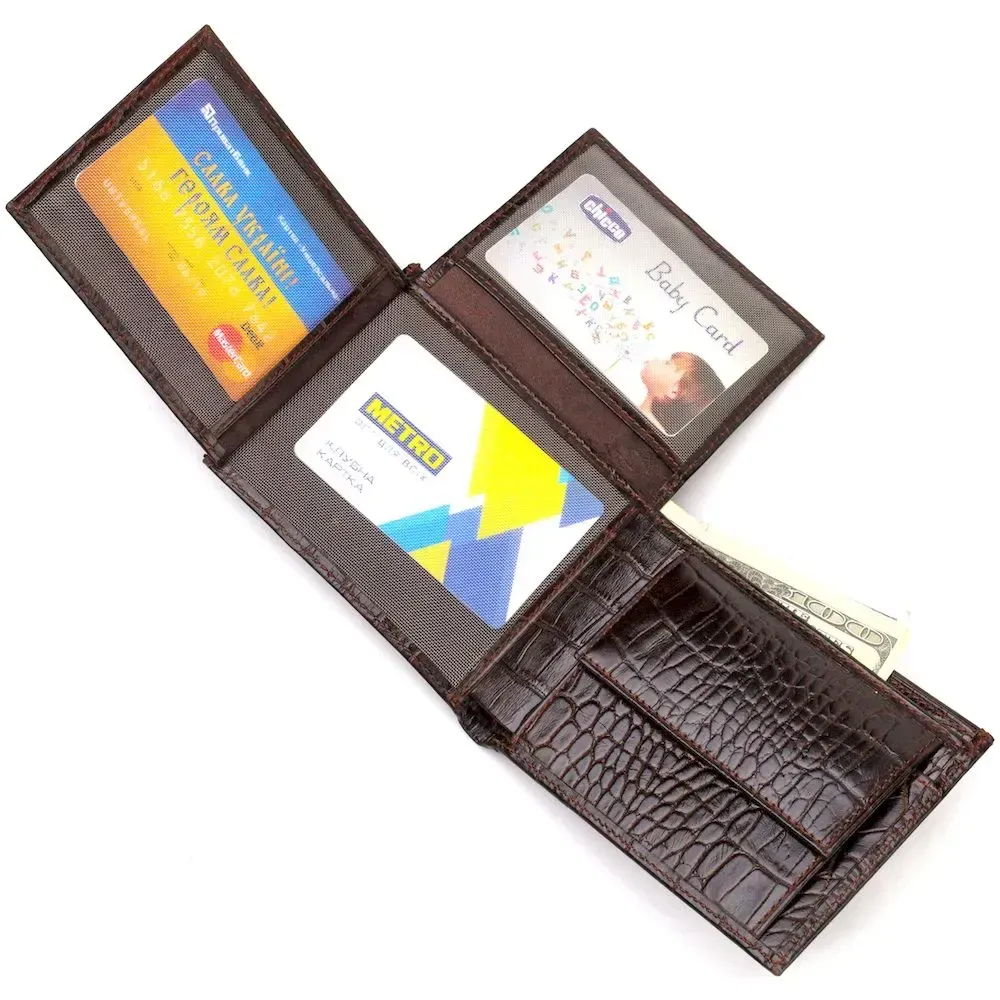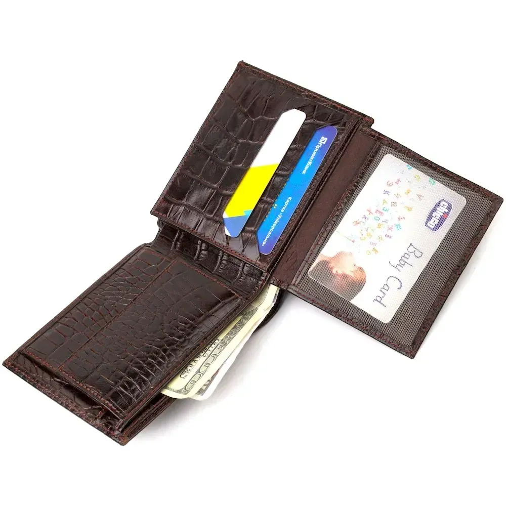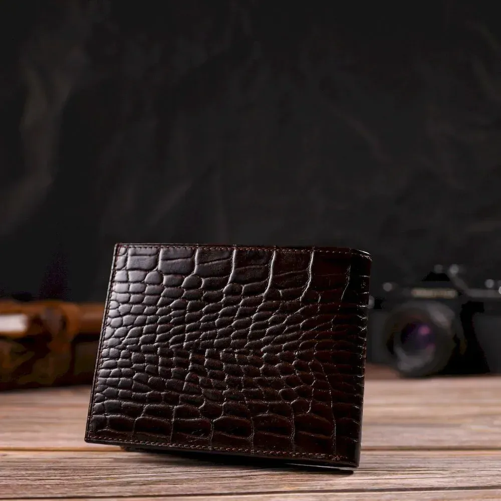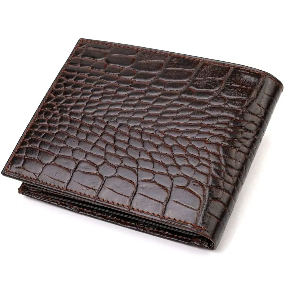 Модний гаманець для чоловіків з натуральної шкіри з тисненням під крокодила CANPELLINI 21926 Коричневий