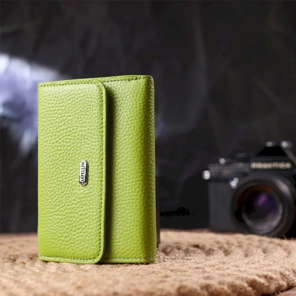 Стильний молодіжний гаманець з натуральної шкіри флотар CANPELLINI 21598 Салатовий