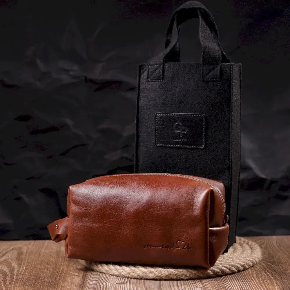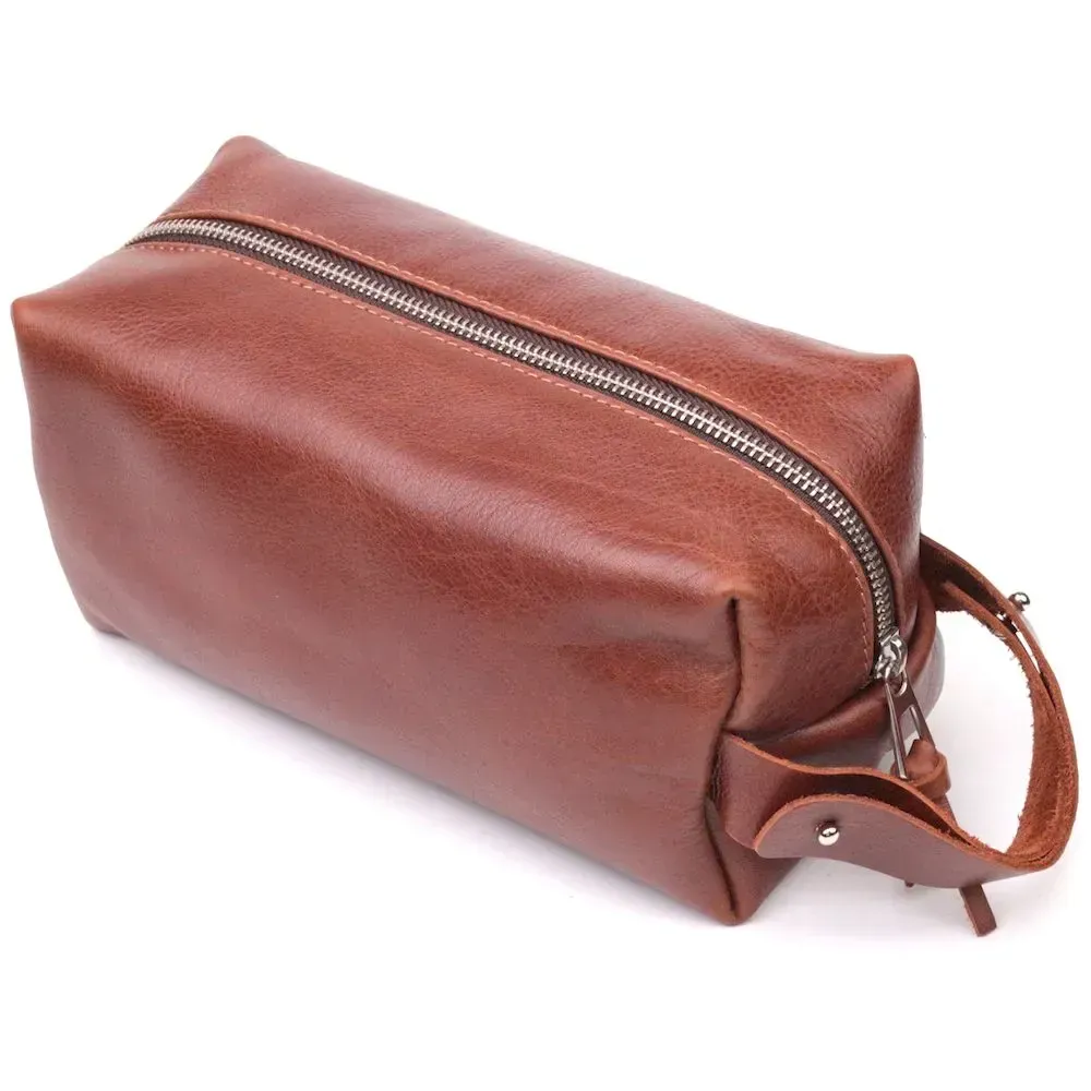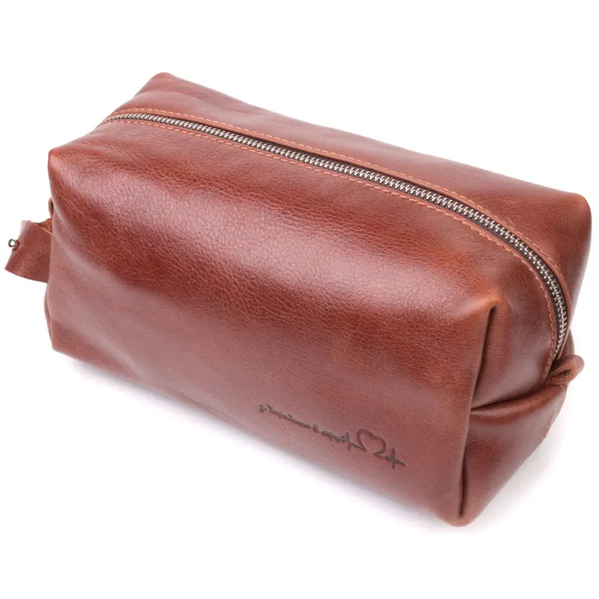 Чоловічі косметички великого розміру з гладкої шкіри на блискавці Серце GRANDE PELLE 16768 Світло-коричнева