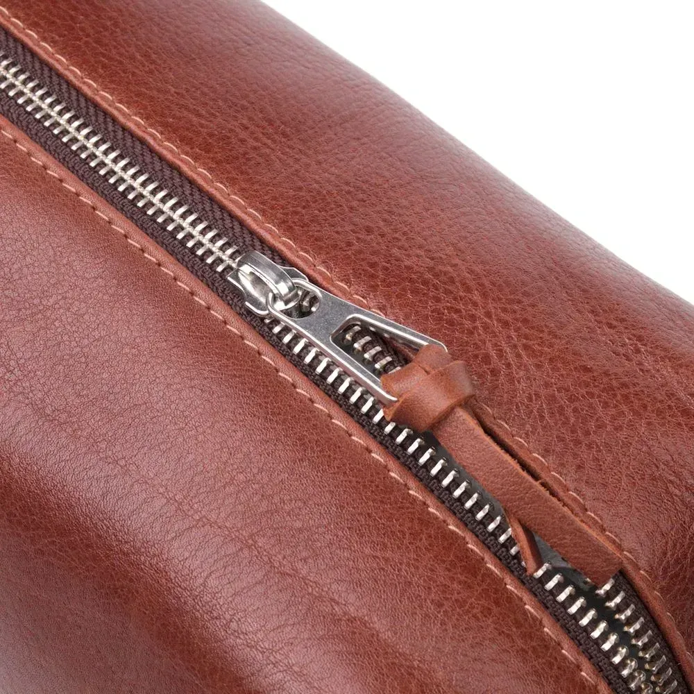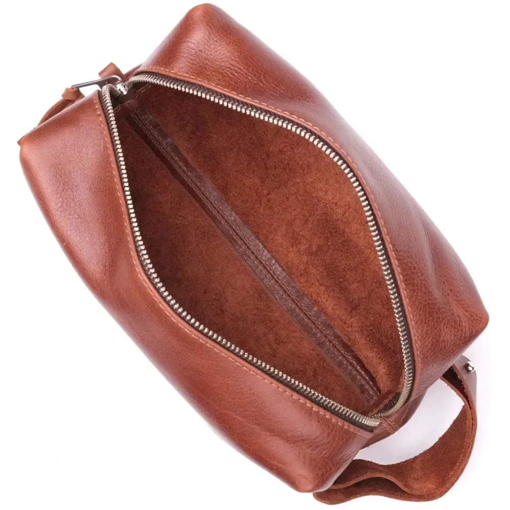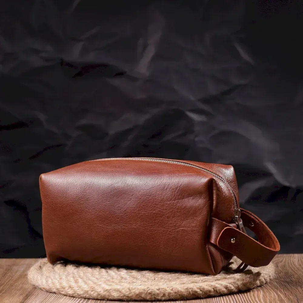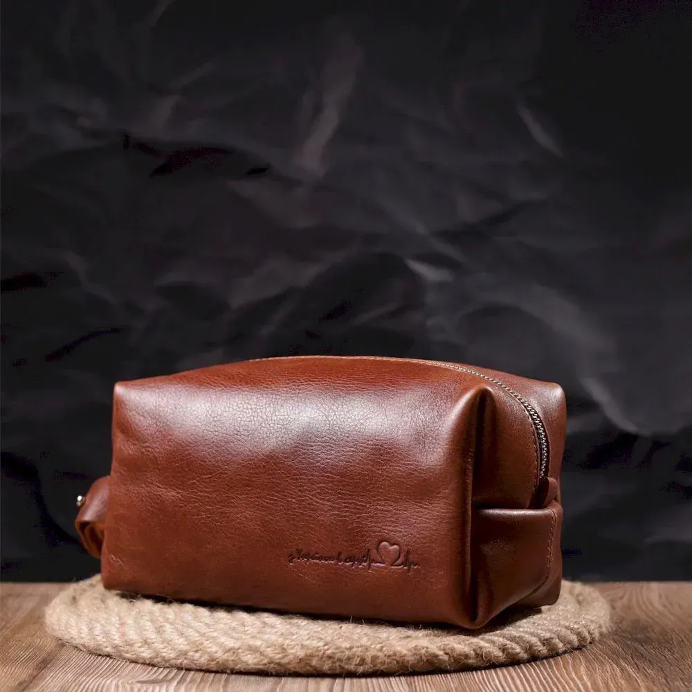 Чоловічі косметички великого розміру з гладкої шкіри на блискавці Серце GRANDE PELLE 16768 Світло-коричнева