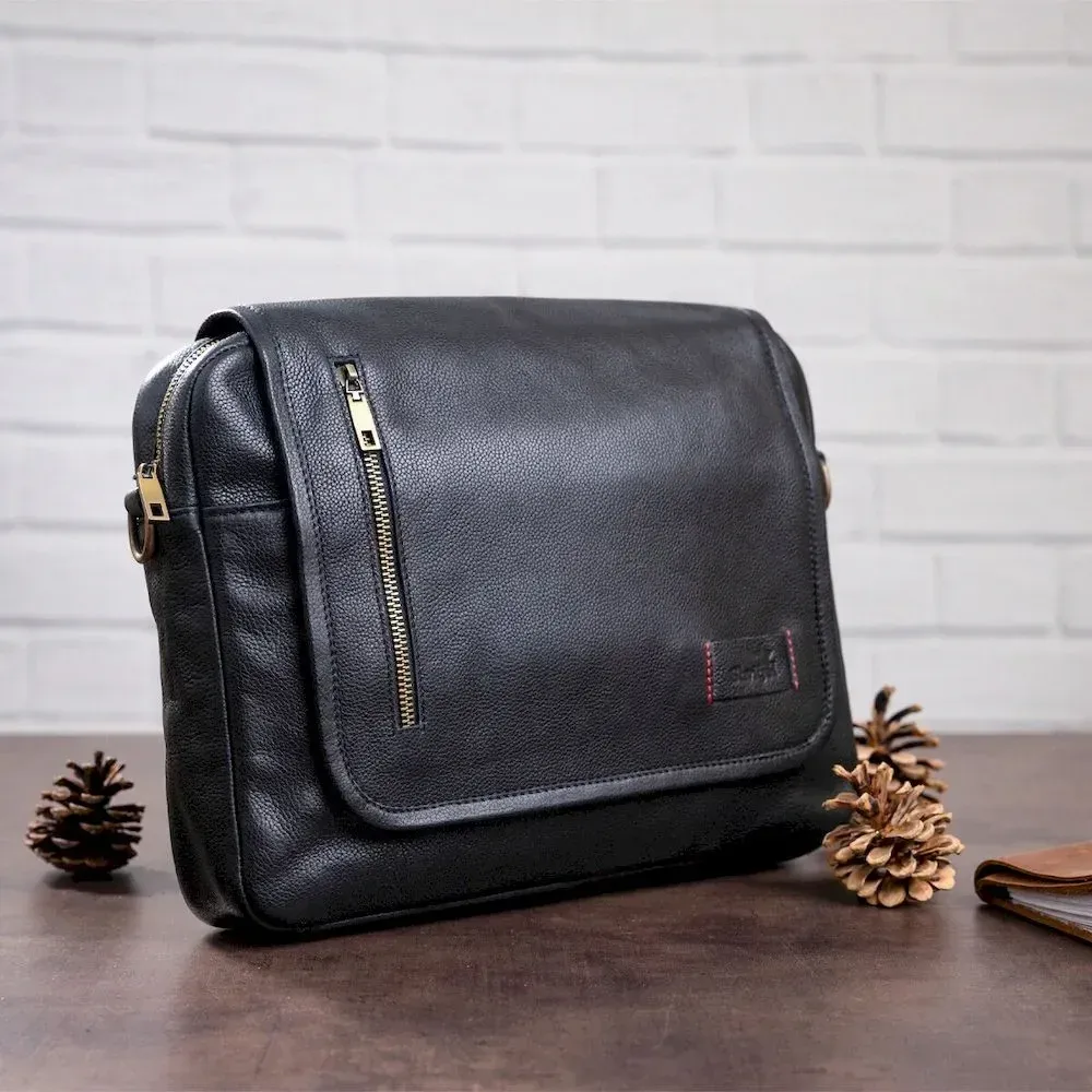 Чоловіча шкіряна сумка через плече SHVIGEL 19116 Чорна