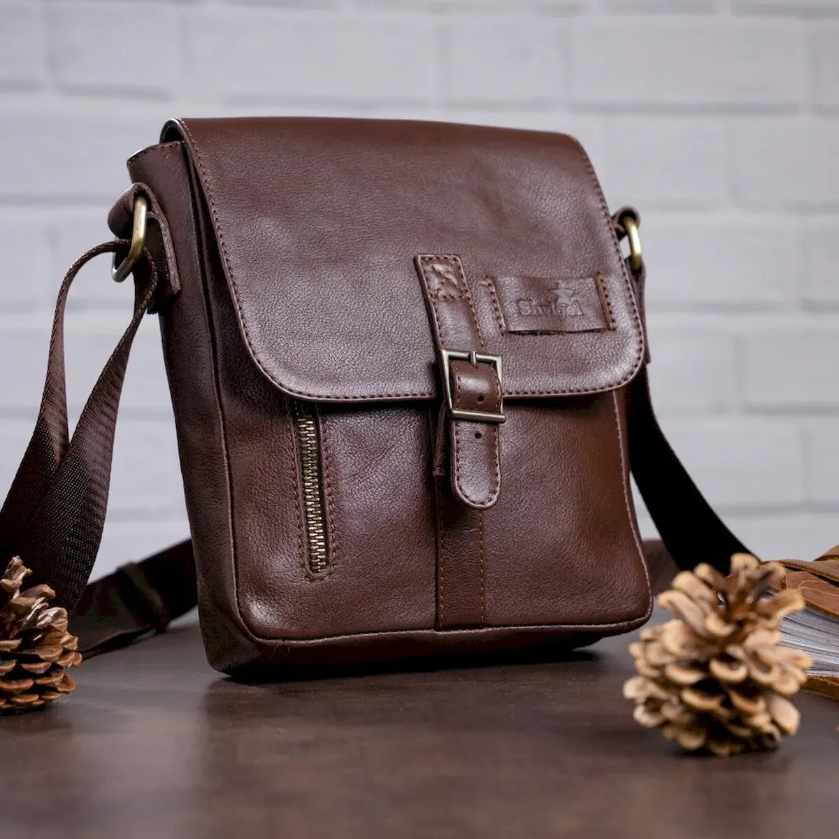Чоловіча сумка оптимального розміру на кожен день. Виріб виготовлено з натуральної шкіри типу флотар, де менш помітні подряпини і потертості. Сумка практично не вибаглива у догляді. Модель доповнена міцною металевою фурнітурою. Ми впевнені, що сумка з натуральної шкіри прослужить вам набагато довше, ніж із замінника чи текстилю. Виріб має мінімальний, але найнеобхідніший функціонал для будь-якого чоловіка. Ви можете використовувати сумку замість барсетки, і всі ваші речі завжди будуть під рукою. . Виріб підійде чоловікам, які цінують високу якість та зручність.