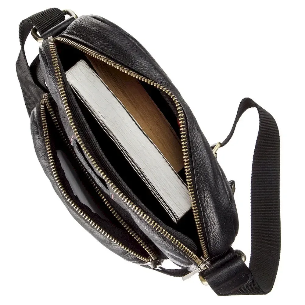 Чоловіча сумка невеликого розміру з натуральної шкіри найвищої якості. Аксесуар ідеально підійде щодня. З такою сумкою ви можете ходити на роботу, зустрічі чи поїздки. Всередині аксесуара незвичайна червона підкладка із міцного текстилю. Модель оснащена фурнітурою із міцного металу. Ремінець у сумці на плече текстильний і не знімається. Якщо ви шукаєте подарунок для близької людини, рекомендуємо придивитися до цієї моделі.
