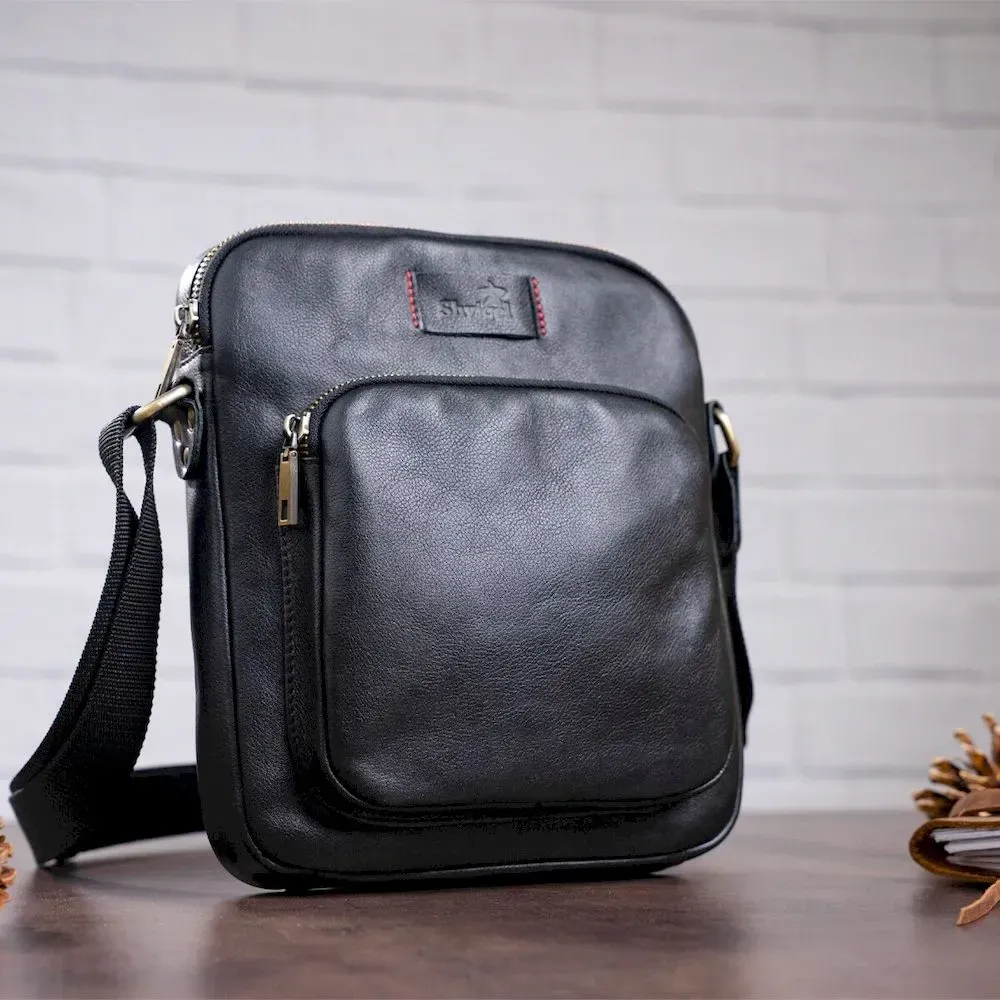 Чоловіча шкіряна сумка SHVIGEL 19111 Чорна