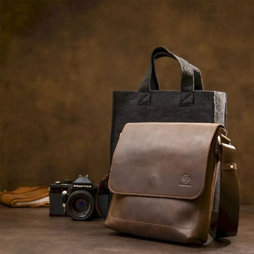 Чоловіча сумка-месенджер GRANDE PELLE 11432 Коричневий