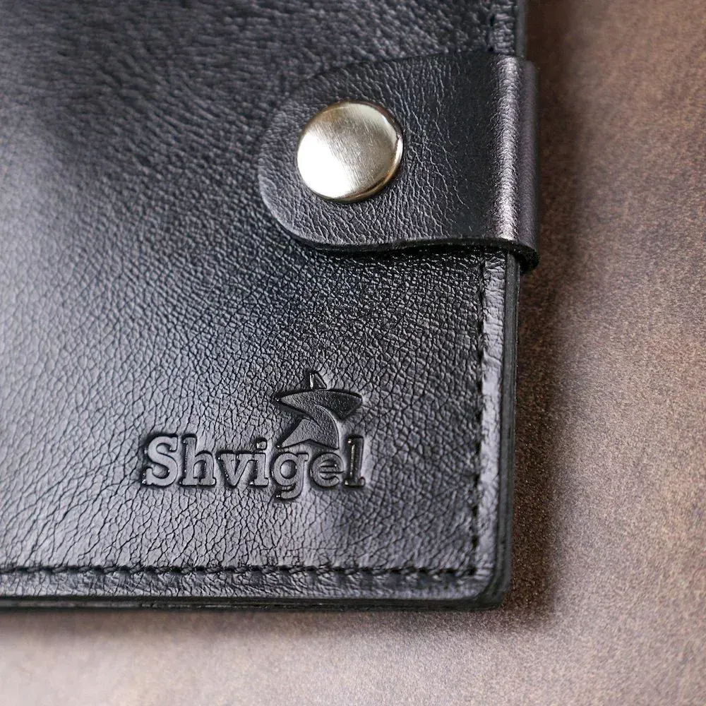 Чоловічий глянсовий шкіряний портмоне Shvigel 16481 Чорний