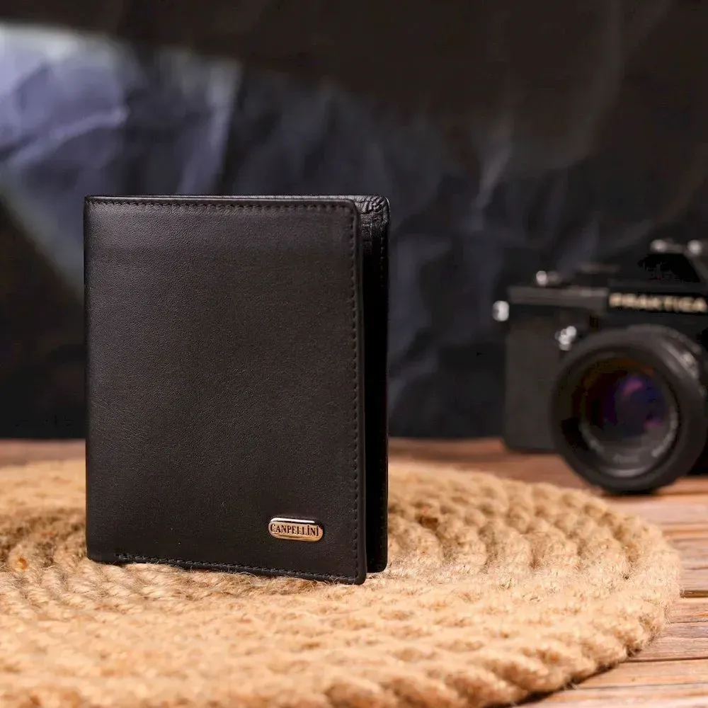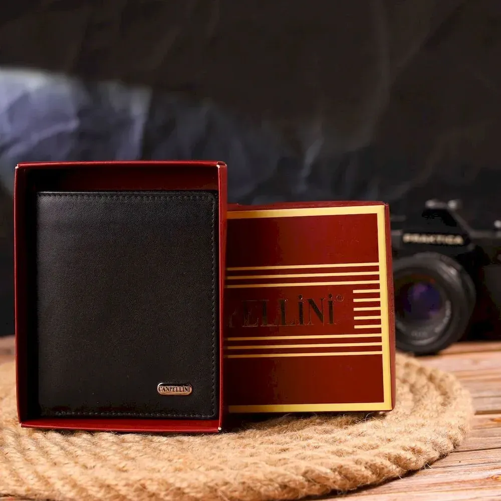 Чоловіче портмоне з натуральної гладкої шкіри CANPELLINI 21500 Чорне