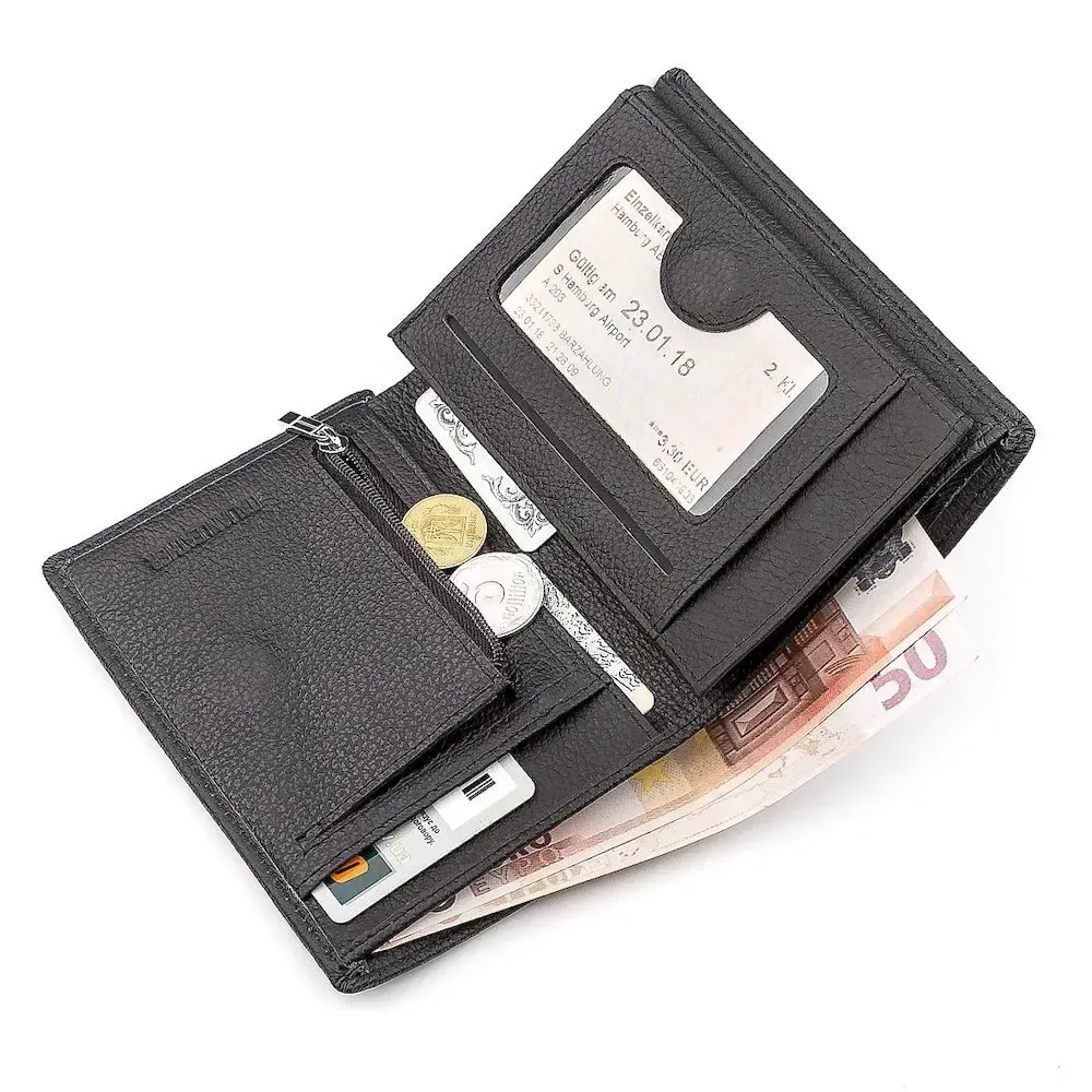 Невеликий, але при цьому досить місткий та функціональний чоловічий купюрник з натуральної шкіри. Лицьова сторона виробу прикрашена металевим логотипом компанії виробника. Гаманець упакований у гарну фірмову коробочку, тому він може бути використаний як подарунок.
