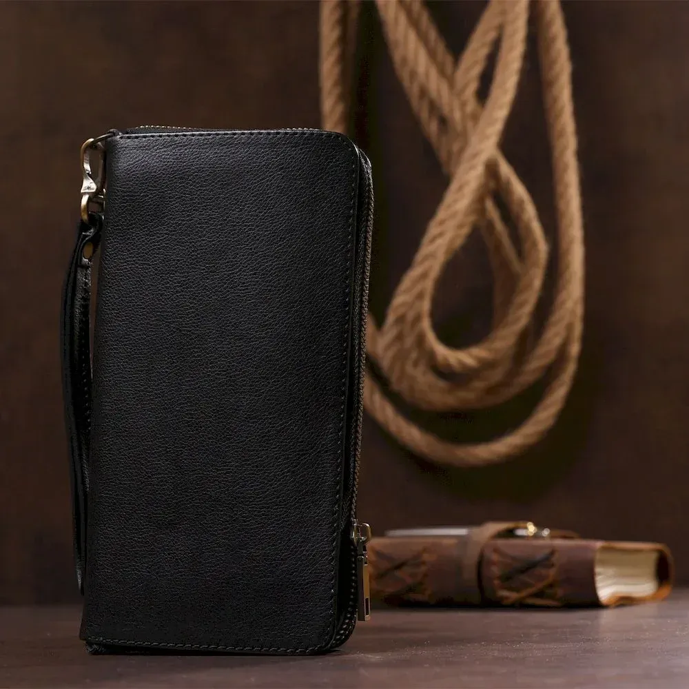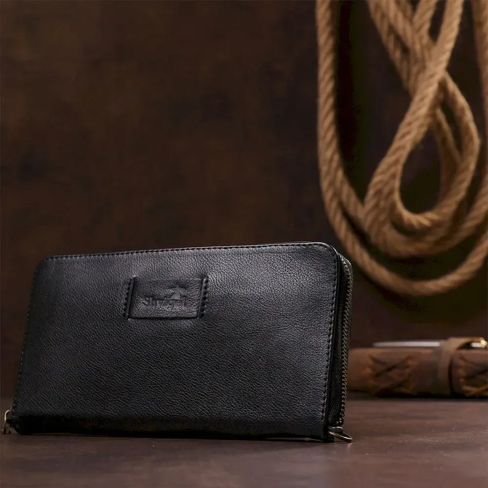 Чоловічий горизонтальний шкіряний клатч SHVIGEL 19120 Чорний