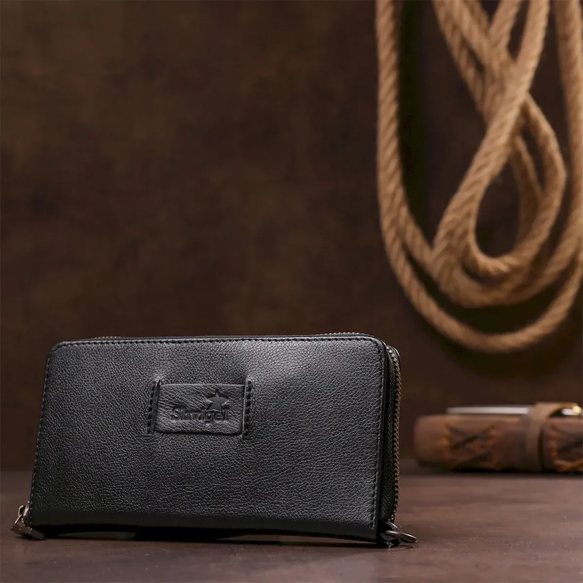 Чоловічий горизонтальний шкіряний клатч SHVIGEL 19123 Чорний