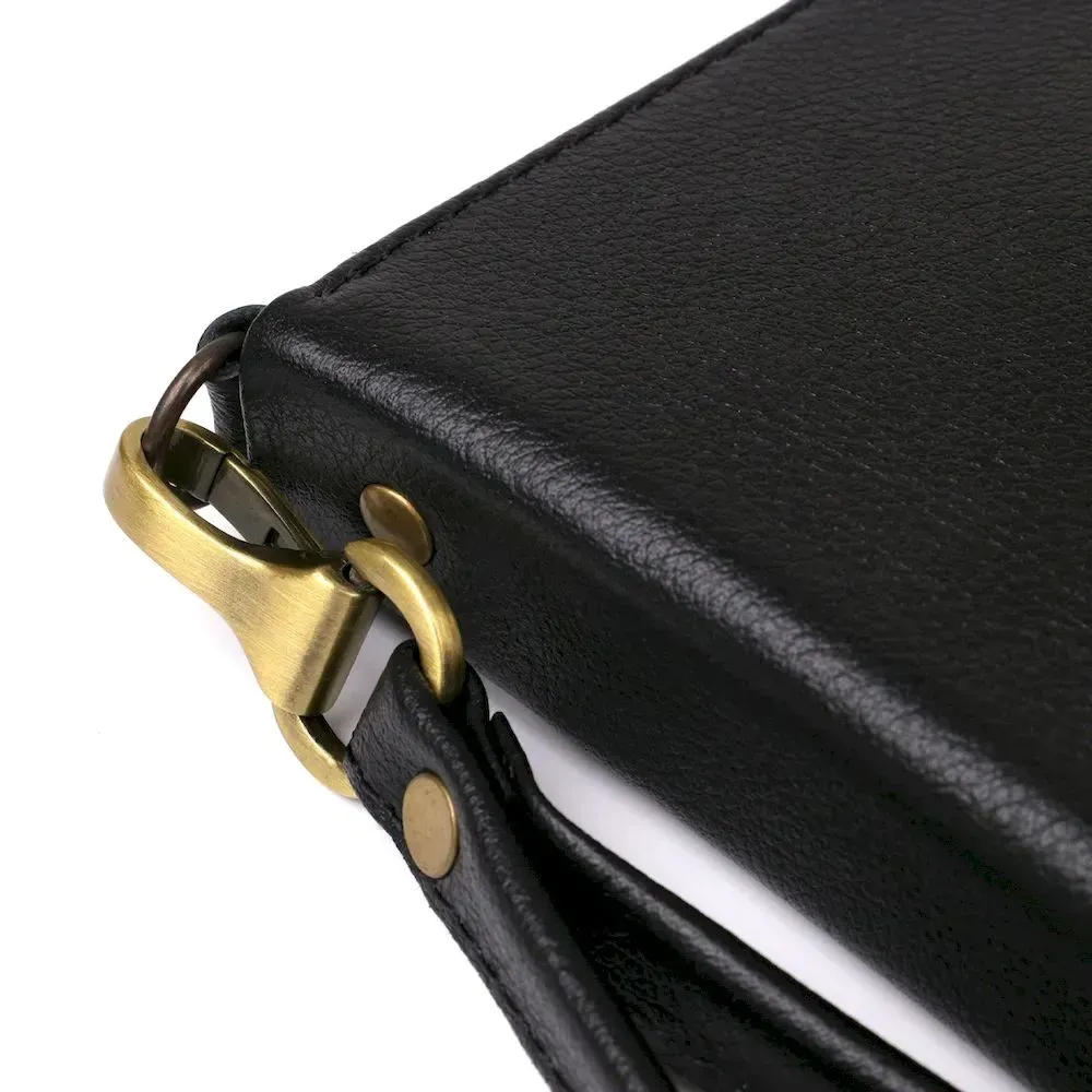 - знімний ремінець на зап'ястя.< /p> Шкіряний чоловічий клатч-барсетка зі знімним ремінцем. Клатч дуже місткий та має просторі відділення. Класичний чорний колір підійде під будь-який гардероб, оскільки є найоптимальнішим. Виріб доповнений міцною фурнітурою з якісного металу. На лицьовій стороні виробу тиснений логотип бренду. Ви також можете використовувати клатч замість барсетки для документів. Якщо ви шукаєте подарунок для чоловіка – клатч стане для нього найкращим і практичним подарунком.
