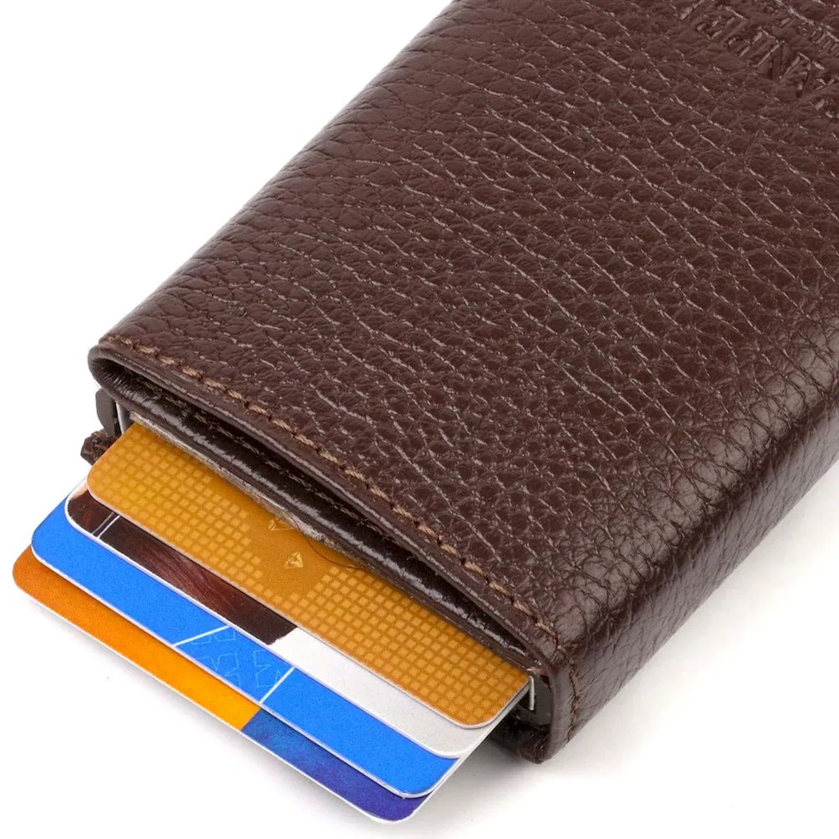 Чоловічий картхолдер три складення з автоматичним механізмом з натуральної шкіри флотар CANPELLINI 21934 Коричневий