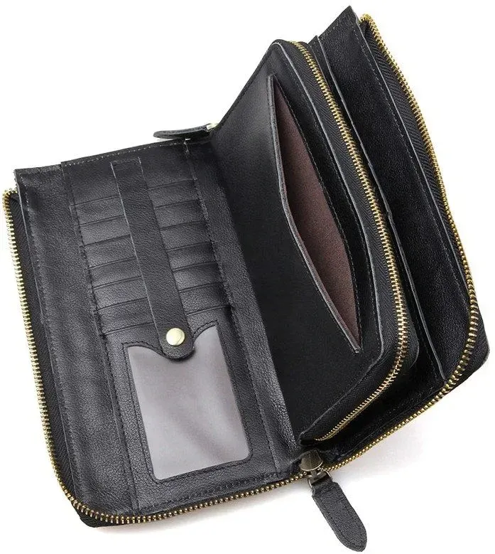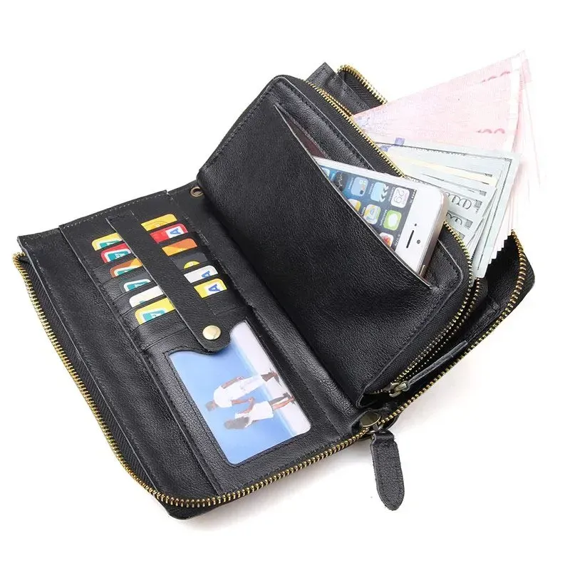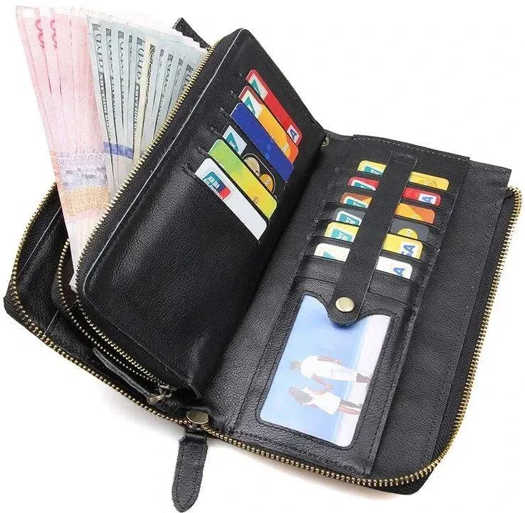 Функціонал барсетки-гаманець дуже великий, всередині є 18 слотів для карт (карти фіксуються клапаном), 2 додаткові місткі кишені для банкнот, 1 відділення на блискавці, 1 кишеня для мобільного телефону.