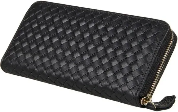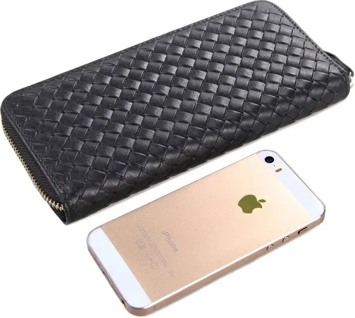 Для виготовлення клатча використовувалася натуральна теляча шкіра з тисненням під "плетіння", надійна фурнітура та міцний текстиль для внутрішньої підкладки. Дизайн аксесуару сучасний і незвичайний, він легко виділяється з безлічі виробів. Закривається блискавкою кольору золота. Усередині розділений на чотири відділи, посередині є кишеня-перегородка, з боків додаткові кишені і місця для пластикових карток .