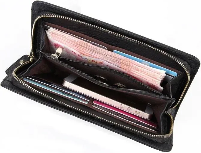 -По чотири місця для пластикових або візиток з кожного боку.< br /> У барсетку легко поміщається габаритний смартфон 5.5 дюйма.