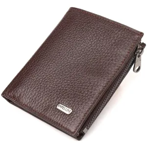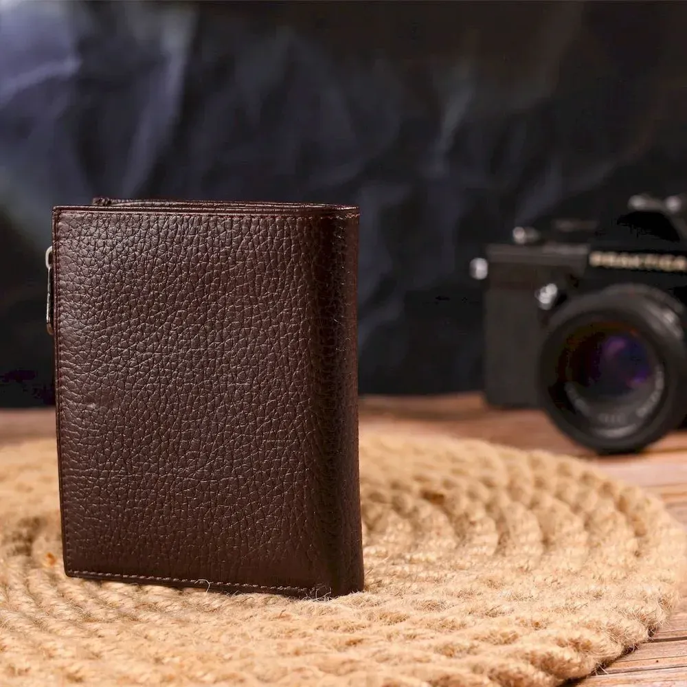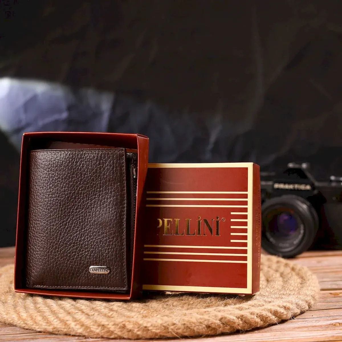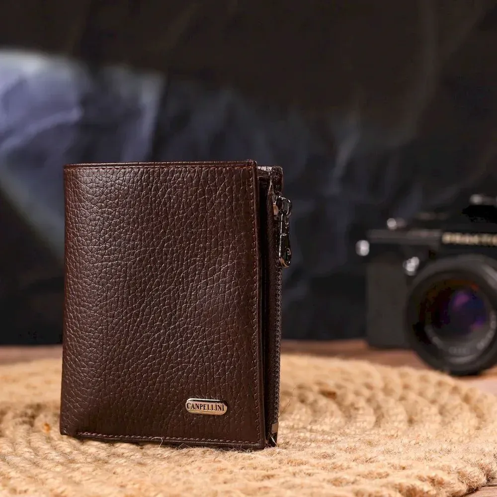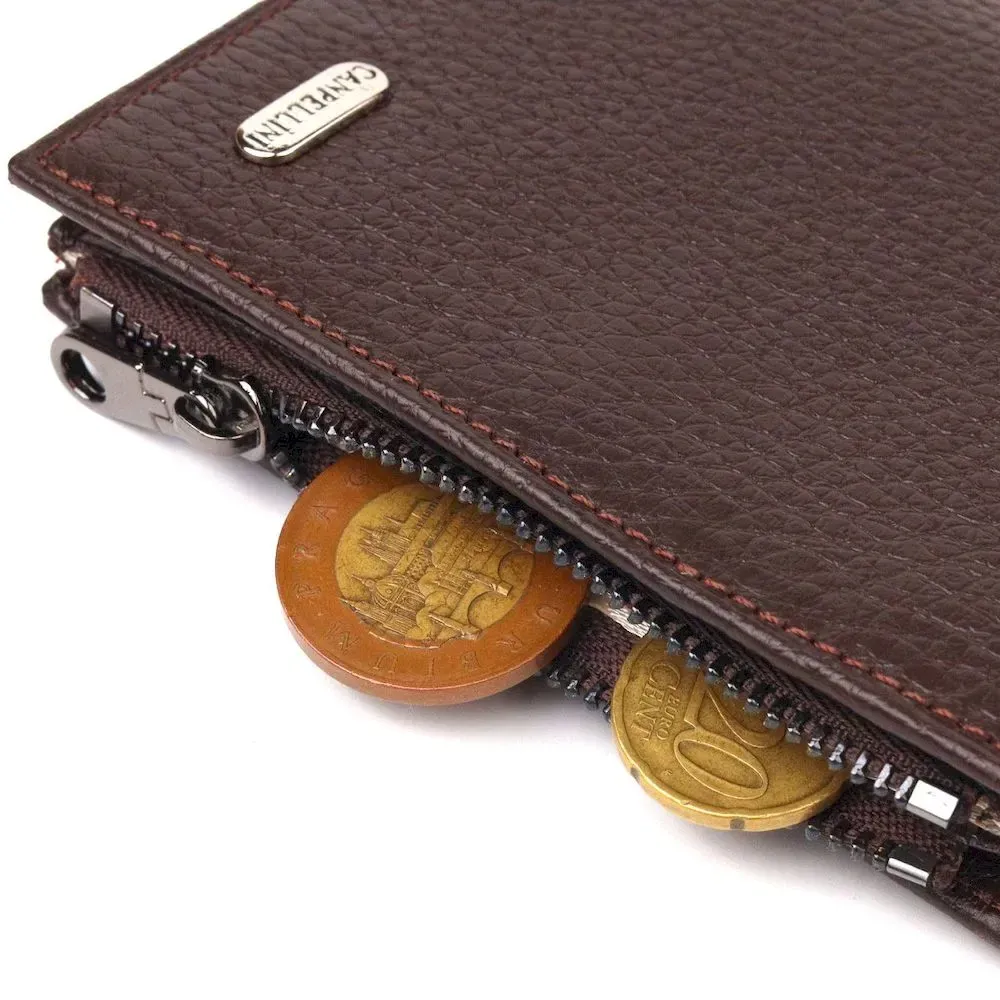 Чоловічий компактний вертикальний гаманець з натуральної шкіри CANPELLINI 21674 Коричневий
