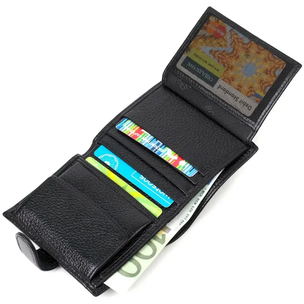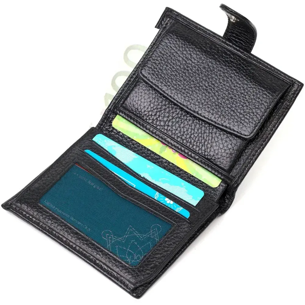 Класичний портмоне з натуральної шкіри, м'який і приємний на дотик . Аксесуар складається з двох відділень для купюр, шести осередків для пластикових карток, двох прилеглих кишень та монетниці. У виробі використано якісну фурнітуру. Закривається гаманець хлястиком на кнопку. Якісний і надійний гаманець - саме такий аксесуар повинен бути у кожної людини, що поважає себе.