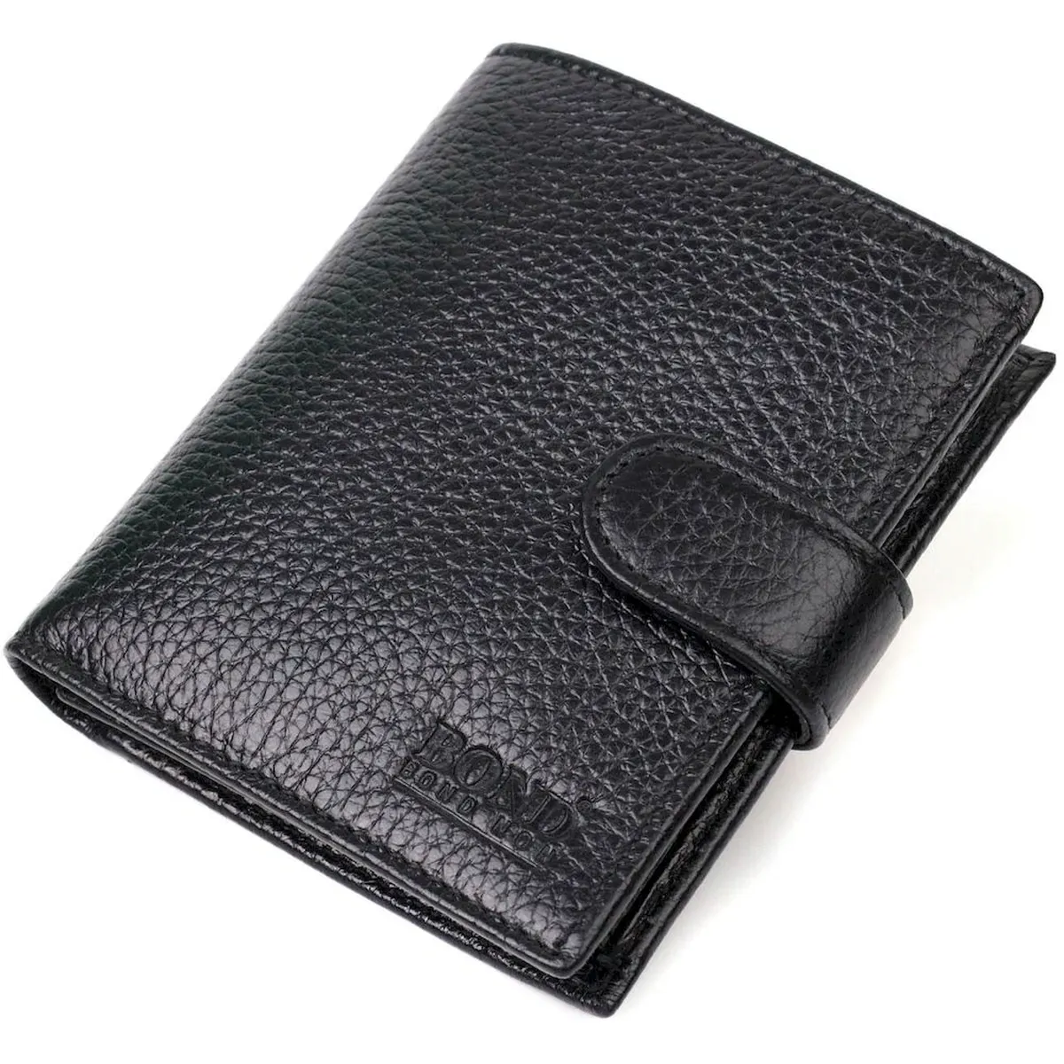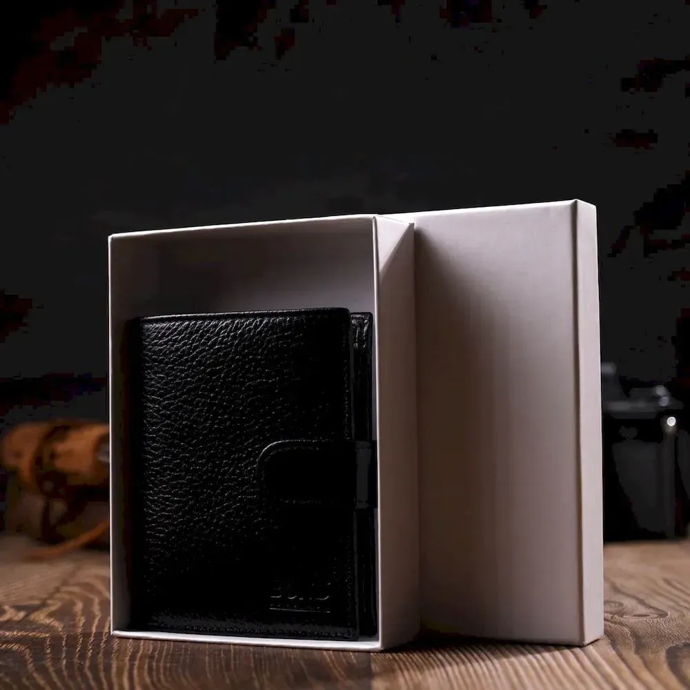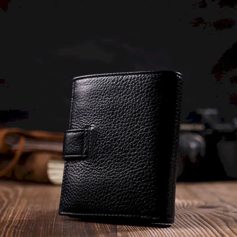 Чоловічий компактний вертикальний гаманець із натуральної шкіри флотар BOND 22005 Чорний