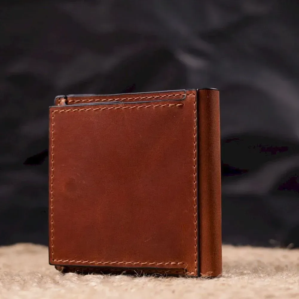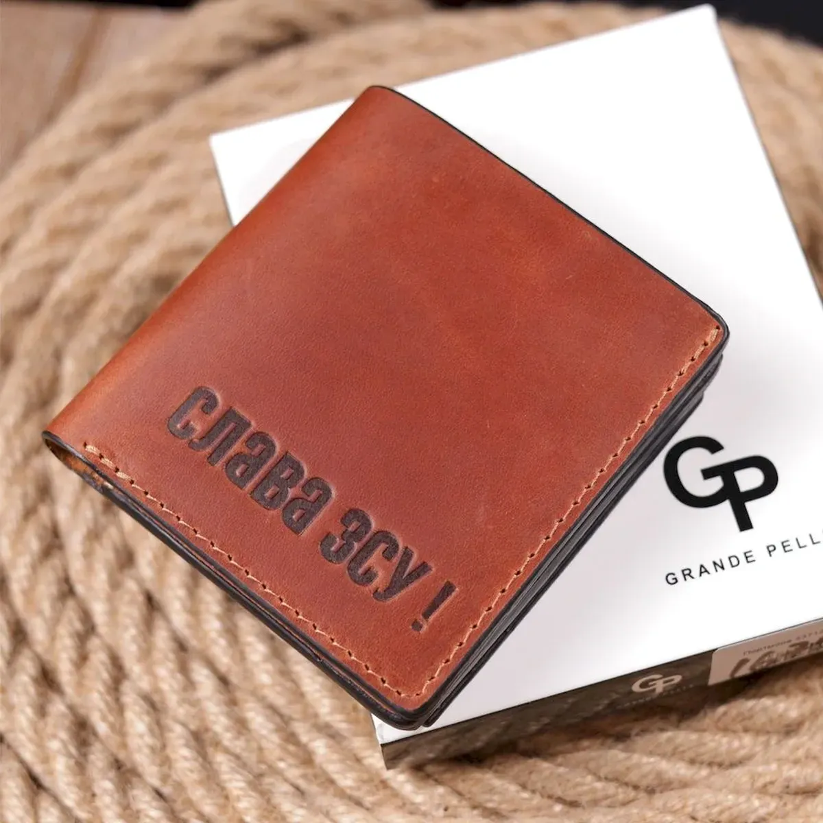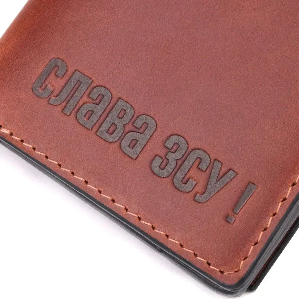 Чоловічий гаманець із вінтажної шкіри із монетницею Слава ЗСУ GRANDE PELLE 16756 Світло-коричневий
