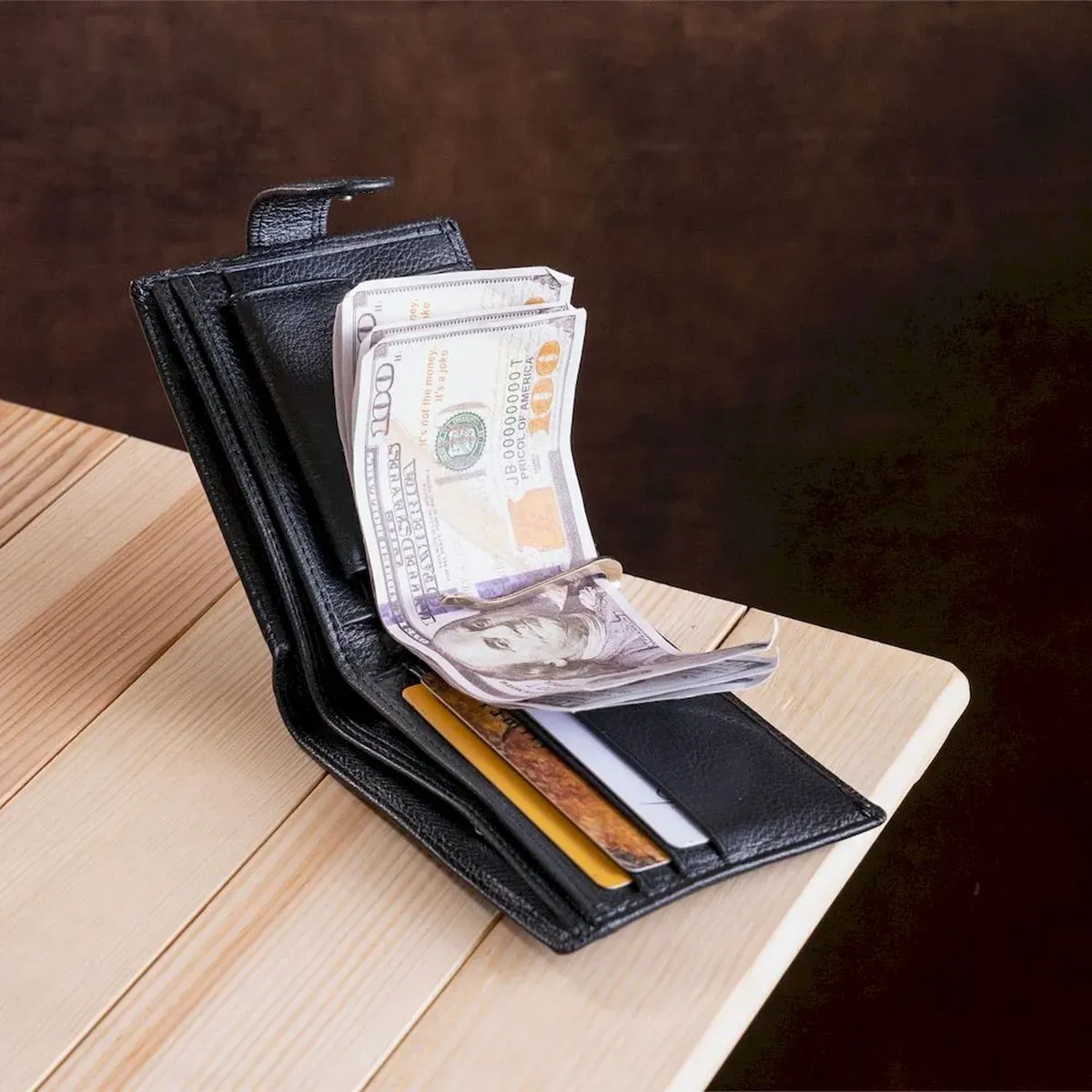 Чоловічий гаманець ST Leather 18309 (ST113-1) із затискачем для грошей Чорний